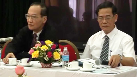 | PGS.TS Nguyễn Mạnh Nhâm và PGS.TS Lê Lương Đống trong hội thảo. |