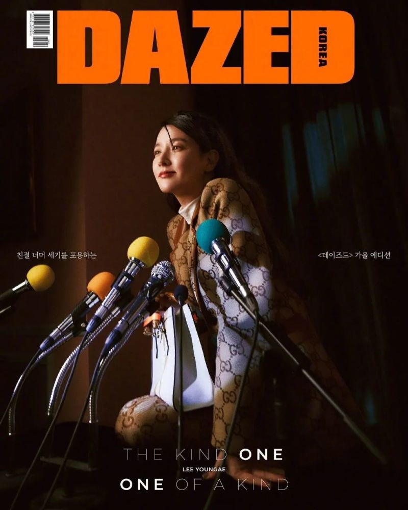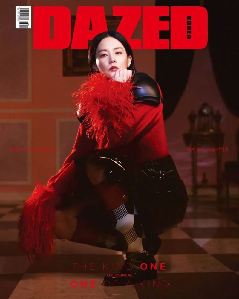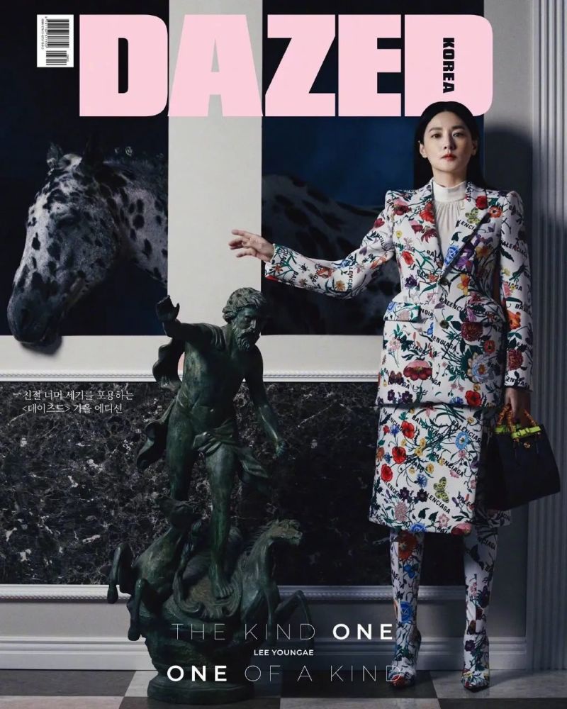 Trong tháng 9 này, Lee Young Ae còn xuất hiện trên tạp chí Dazed Hàn Quốc với một tạo hình và phong cách cá tính. Trong những bộ đồ hiệu sang trọng và cá tính, Lee Young Ae toát lên thần thái không kém các người mẫu trẻ.