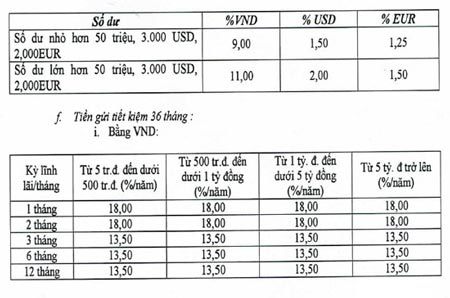 Tuy nhiên, ở sản phẩm tiền gửi tiết kiệm 36 tháng bằng VND, kỳ lĩnh lãi hàng tháng, lãi suất cao nhất đã lên tới 18%/năm, áp dụng cho các kỳ 1 và 2 tháng. Đáng chú ý là chỉ cần gửi với số tiền từ 5 triệu đồng cũng đã được hưởng mức lãi suất cao này.