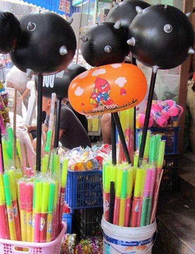 “Chùy địa ngục”, thứ đồ chơi Trung Quốc được xem là “ông hoàng” của đồ chơi trung thu năm nay, rất được các bạn trẻ ưa chuộng. Loại đồ chơi này làm bằng cao su, có nhiều kích cỡ khác nhau với gai nhọn ở đầu, có giá từ 30.000 – 60.000 đồng.