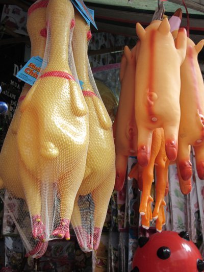 Gà, lợn quay vàng óng trên các sạp hàng, một thứ đồ chơi lạ mắt “made in china”.