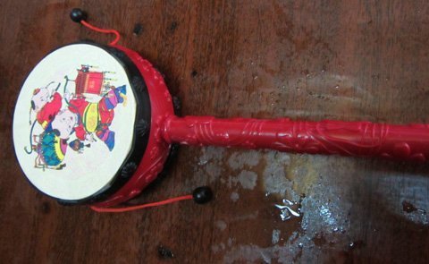 Trong khi đó, trống bỏi, đồ chơi dân gian của người Việt, rất ít khách mua. Thứ đồ chơi chân quê này được tạo nên bởi các chất liệu: Đất sét, cán nhựa, que sắt, giấy hồng, dây nylông. Dùng tay quay, chiếc trống sẽ phát ra những âm thanh “tạch tạch" rất vui tai