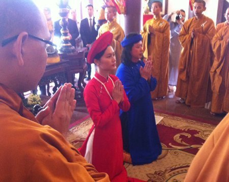 Ngày 12/10 vừa qua, nhiều người đi lễ chùa tại Quy Nhơn đã chứng kiến một lễ cưới trang hoàng, ấm cúng tại đây, và cô dâu chính là nữ diễn viên Đỗ Hải Yến. Trong lễ cưới tại chùa cổ, Đỗ Hải Yến và chồng đều chọn những trang phục áo dài truyền thống.
