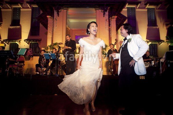 Tiệc cưới được tổ chức và trang hoàng theo phong cách Pháp với 4 phần chính: tiệc cocktail tại sảnh, màn thưởng thức nghệ thuật tại khán phòng Ngụy Như Kon Tum, tiệc ăn uống ở khuôn viên sân Đại học Dược và cuối cùng là phần nhảy múa của cô dâu chú rể với bạn bè.