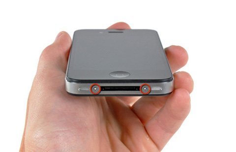 Trước tiên bạn hãy tháo lớp kính bảo vệ mặt của iPhone 4 ra, để làm việc này bạn sẽ cần vặn hai chiếc ốc nhỏ ở đáy. Máy sử dụng ốc vít hình sao nên bạn cần phải có công cụ mở vít chuyên dụng.