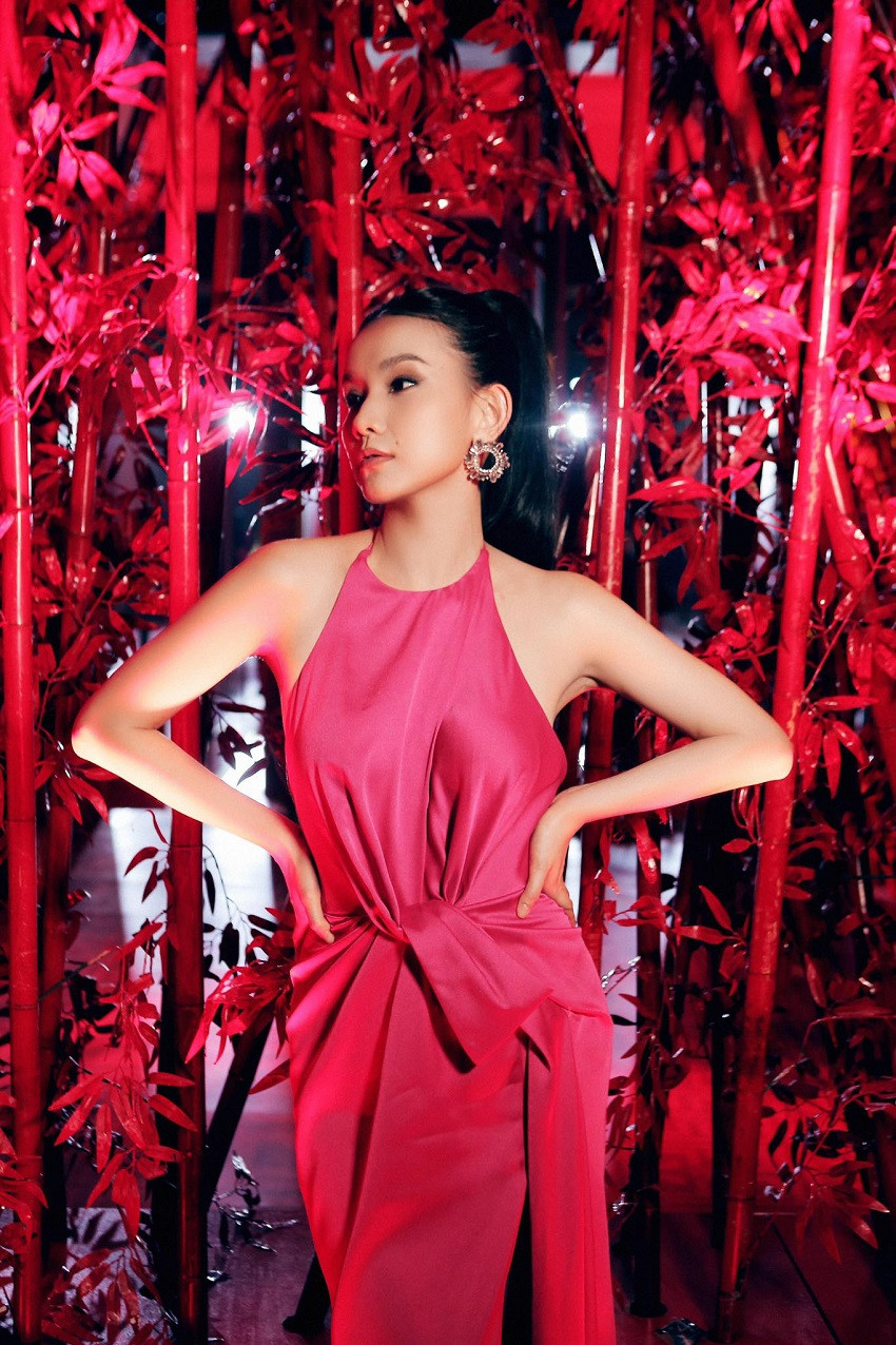 Xuất hiện sau hôn lễ với thiếu gia Vinh Quang, Đỗ Mỹ Linh xuất hiện với thần sắc tươi tắn. Thiết kế này của Lê Thanh Hòa có kiểu dáng xẻ lưng sâu, giúp người đẹp sinh năm 1996 khoe khéo được những đường cong cơ thể.