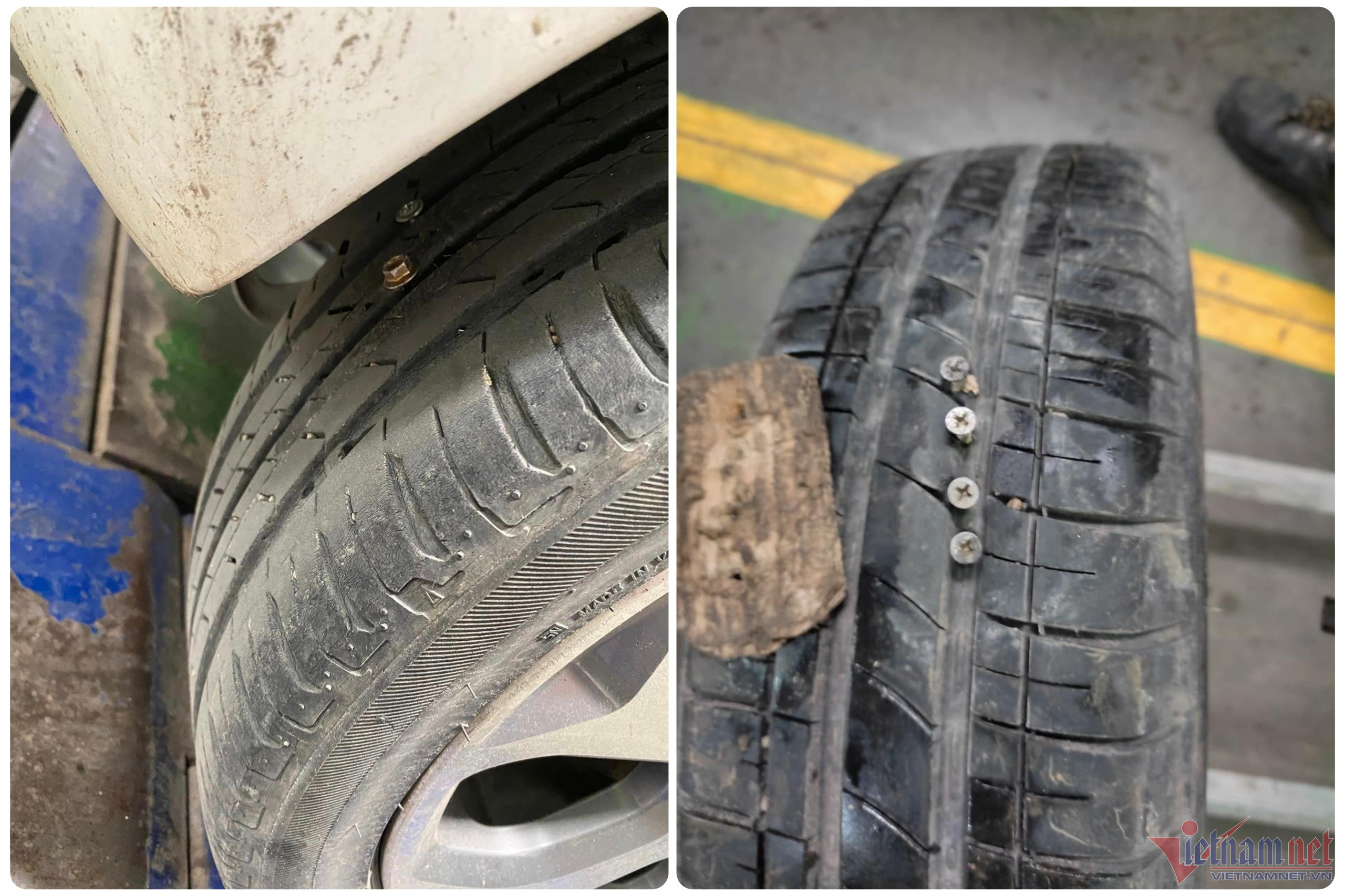 "Sáng ngày 17/6, một nhà dân trên đường Phan Đình Phùng tổ chức đám cưới nên đã để nhờ ô tô trước cửa công ty tôi, vì vậy tôi đã chuyển xe của mình sang bên kia đường, đỗ trước nhà số 478 vốn là một nhà hàng đã đóng cửa nhiều tháng nay. Đến khi tôi ra lấy xe thì phát hiện lốp sau dính hai đinh vít trong đó có một đinh bắn mái tôn khá to", anh Tùng bức xúc kể lại.