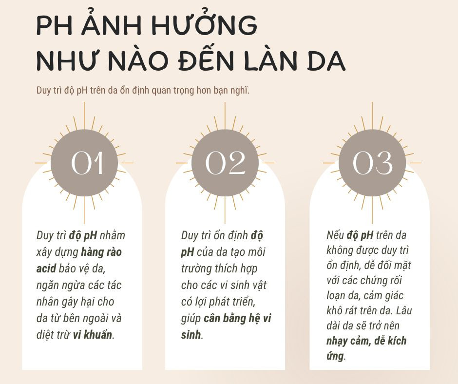 Bên cạnh đó, độ pH của da ở mức thích hợp cũng tạo môi trường tốt cho các vi sinh vật có lợi phát triển, giúp cân bằng hệ vi sinh. Trong quá trình “trú ngụ” trên da, các vi sinh vật góp phần duy trì độ acid ở màng bảo vệ da, làm cho các mầm bênh trên da được diệt trừ.