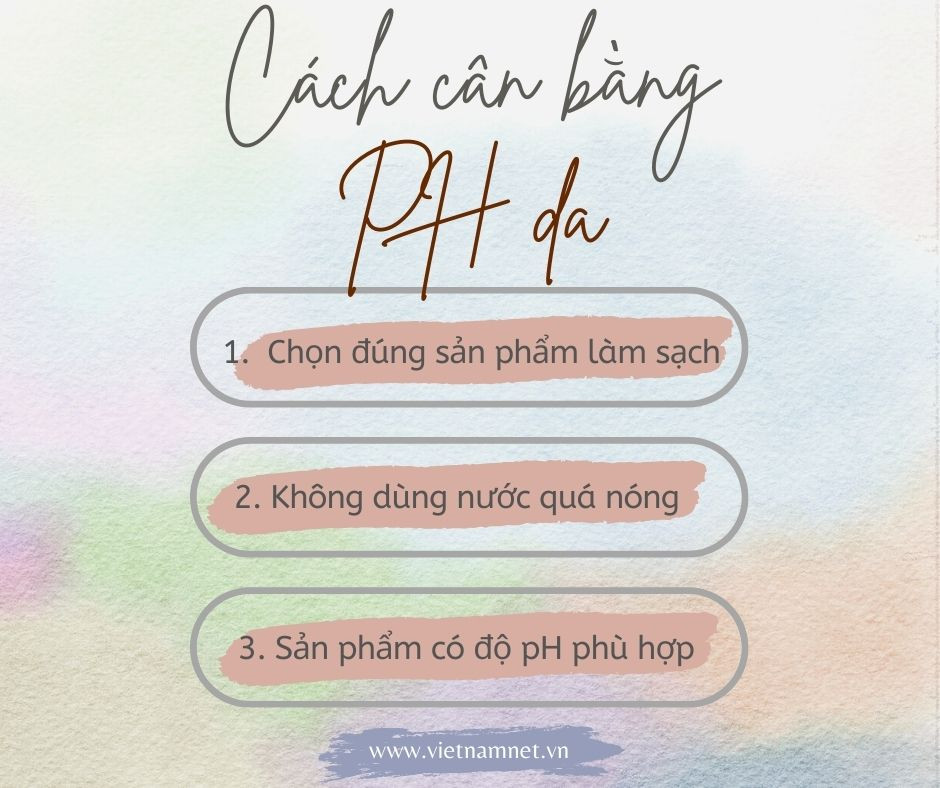 Việc chăm sóc da hằng ngày với các sản phẩm phù hợp là điều quan trọng để duy trì sự cân bằng pH của da. Các chuyên gia cũng tiết lộ trong chu trình dưỡng da, bước làm sạch mặt dễ khiến da mất đi độ pH vốn có vì các sản phẩm làm sạch thường có độ pH lớn hơn 5,5 để tẩy sạch dầu nhờn và bụi bẩn. Vì vậy, trước khi mua các sản phẩm làm sạch da, bạn nên kiểm tra độ pH và loại da để biết cách sử dụng đúng.