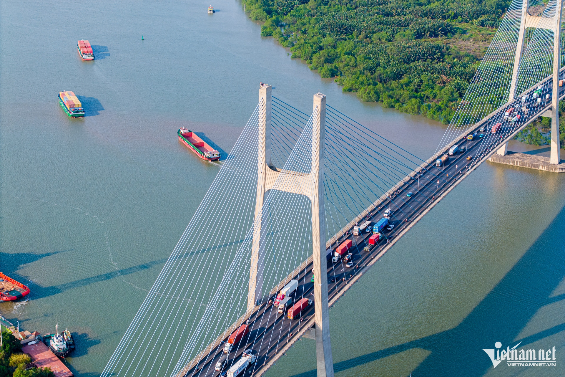 Hệ thống giao thông đa dạng từ đường bộ, đường thủy cho đến đường sắt đô thị... ngày càng ghi dấu ấn cho thành phố mang tên Bác. Trong ảnh, cầu Phú Mỹ - cây cầu dây văng lớn nhất TPHCM nối quận 7 với TP Thủ Đức nổi bật trên dòng sông xanh.