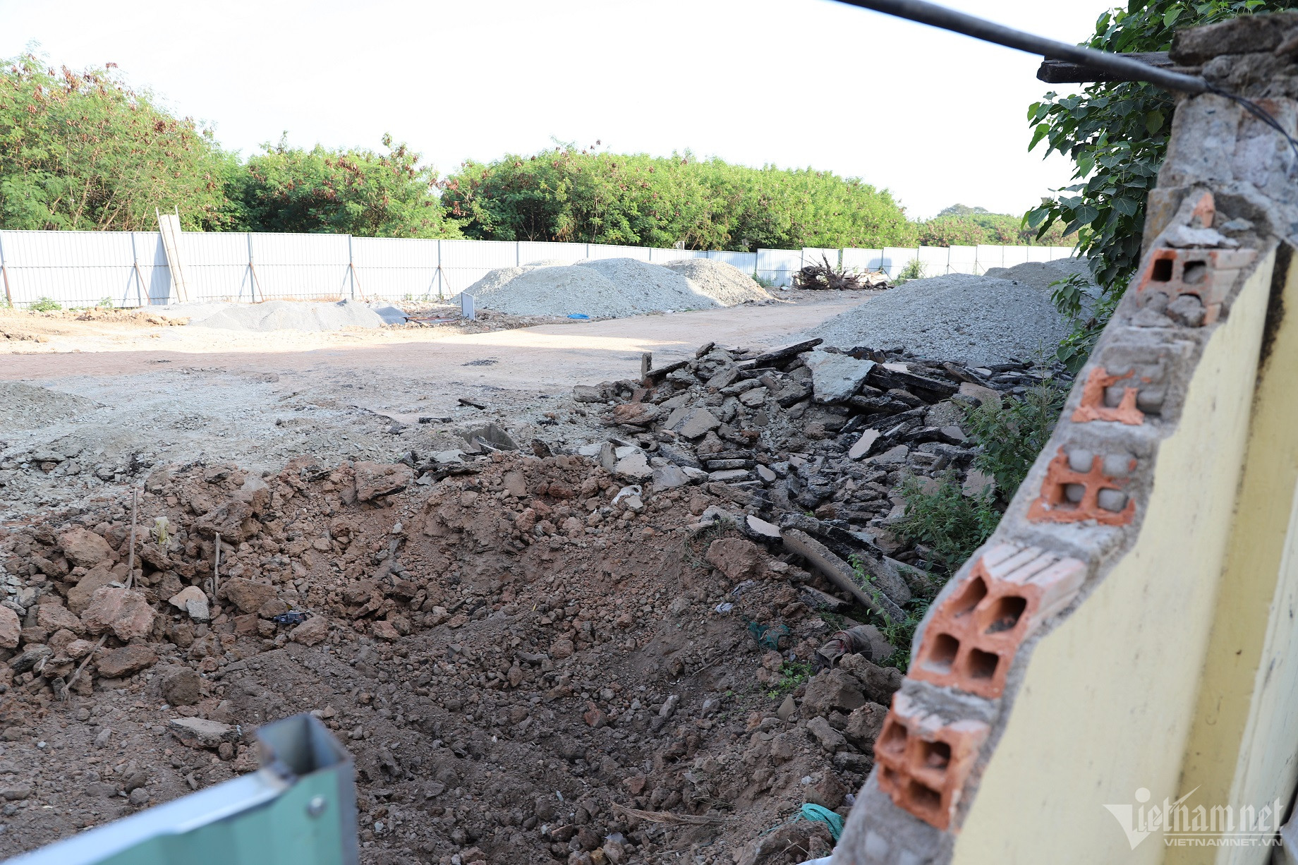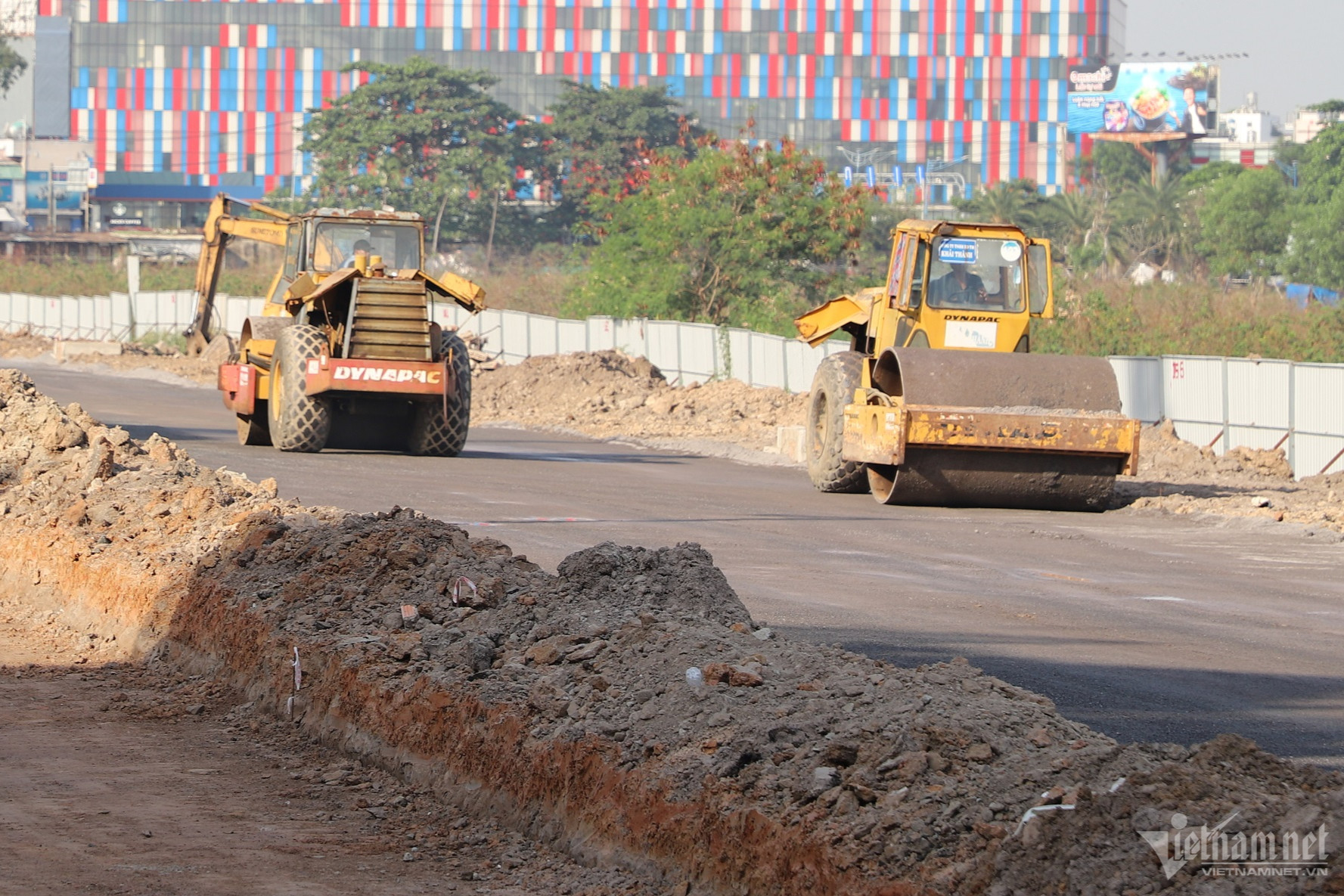 Phía sau rào chắn bằng tôn (sát đường C12) là công trường thi công đoạn cuối tuyến đường nối Trần Quốc Hoàn - Cộng Hòa đang rầm rộ. Một phần tuyến đường nối đã được lộ diện.