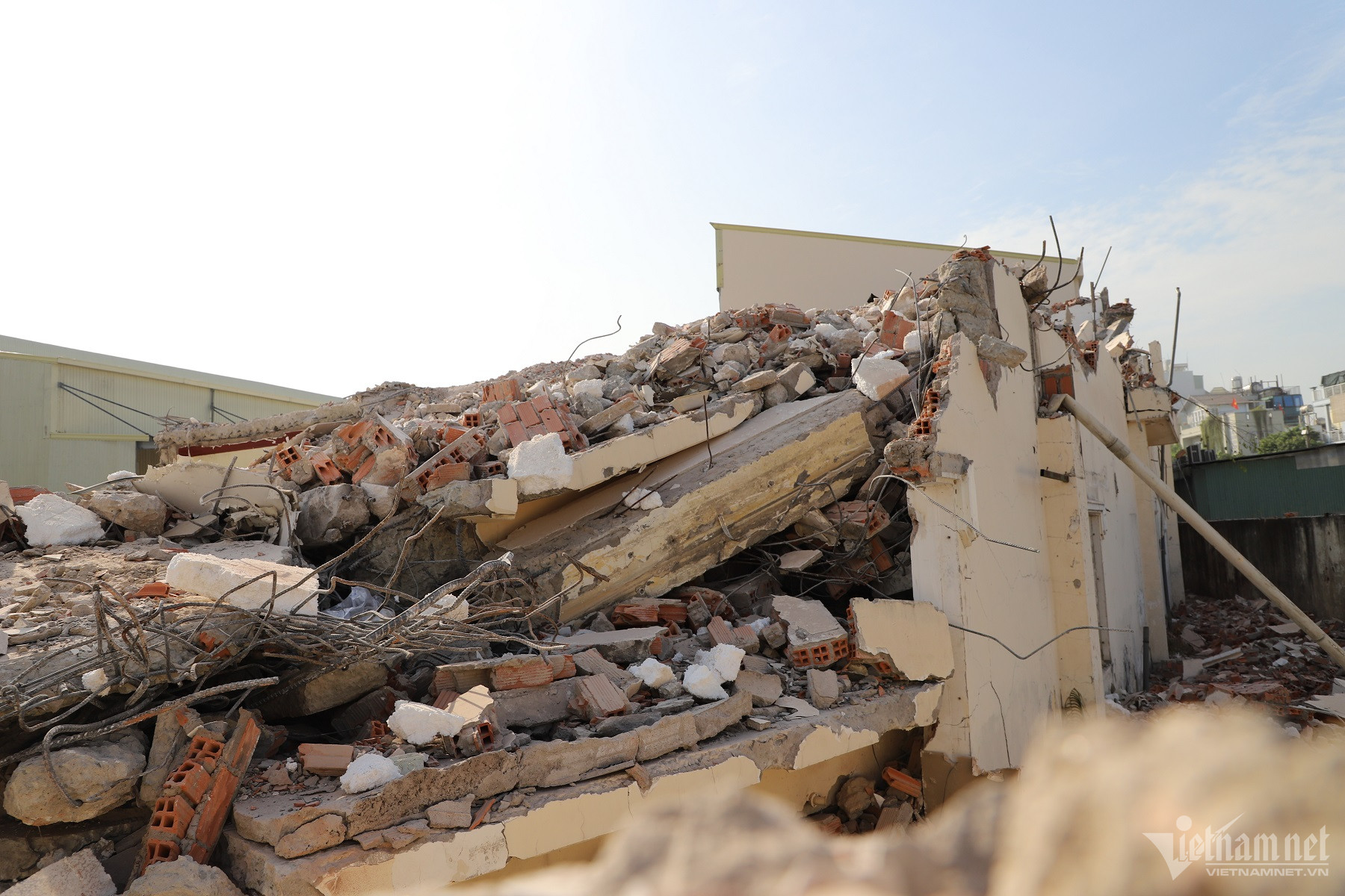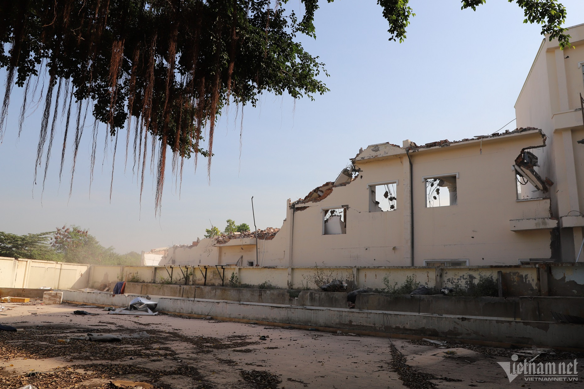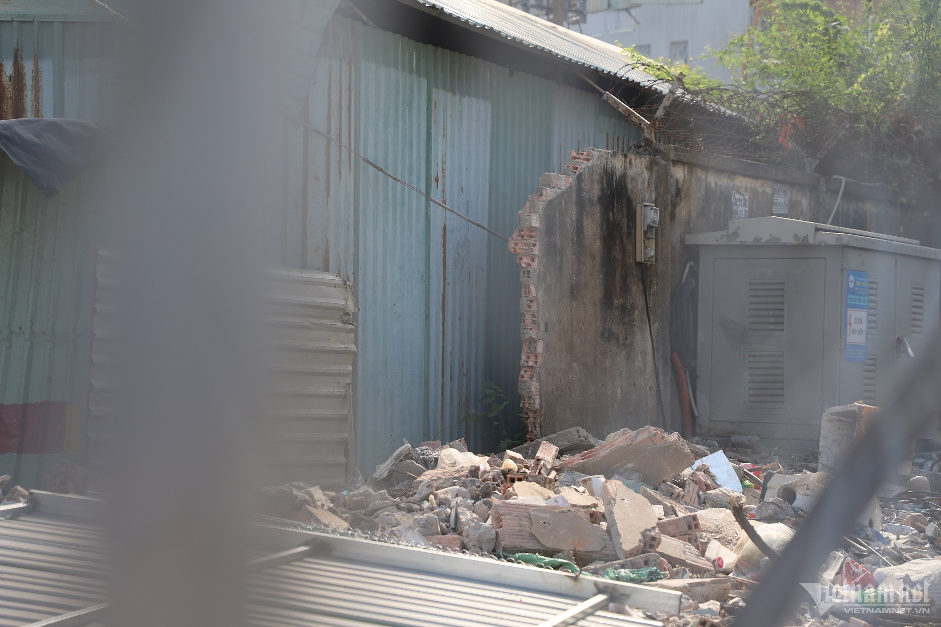 Công tác tháo dỡ bức tường nằm trong gói thầu số 13 thi công đoạn cuối dự án đường nối Trần Quốc Hoàn- Cộng Hòa và mở rộng đoạn kết nối giao thông nút giao Cộng Hòa- Trường Chinh.