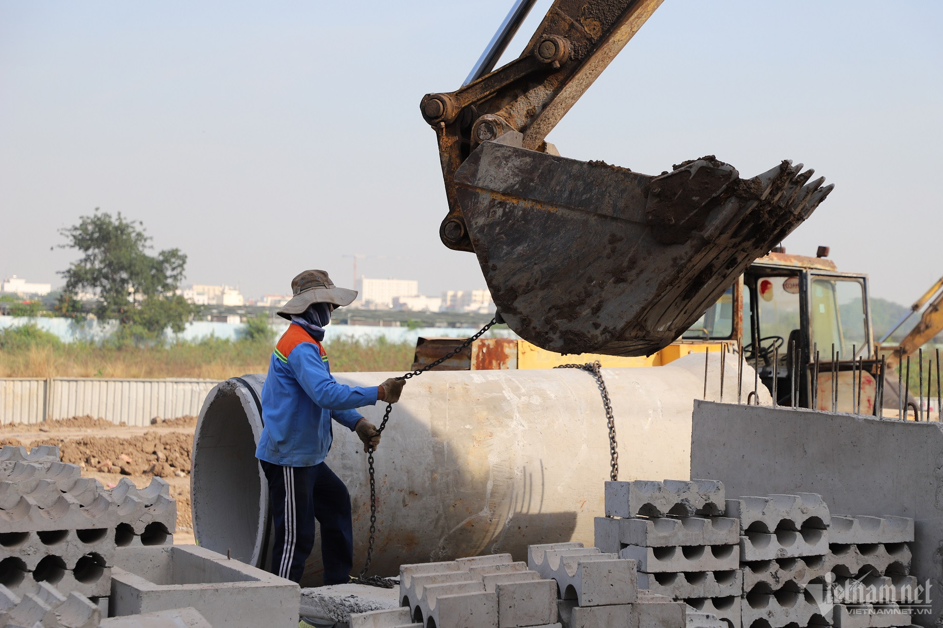 Hiện nay, nhà thầu đang đẩy nhanh tiến độ triển khai thi công đường nối, tường chắn, vỉa hè, thoát nước cho khu vực.