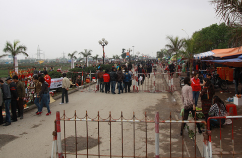 Lối chính vào đền Trần đã được kiểm soát bởi nhiều hàng rào an ninh cầm các loại phương tiện. Liên tiếp cứ 10m lại có một hàng rào bằng sắt nhằm phân chia lượng người chống tình cảnh chen lấn xô đẩy như năm trước.
