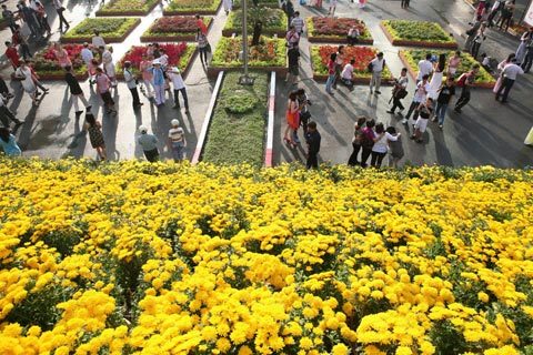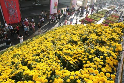 Hoa cúc với màu vàng biểu trưng cho thịnh vượng, viên mãn là loài hoa chiếm nhiều nhất trên cả đường hoa.