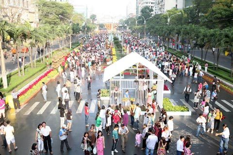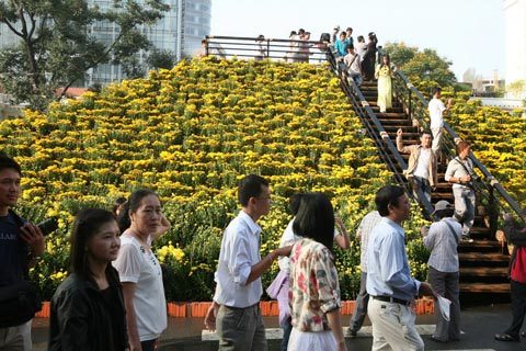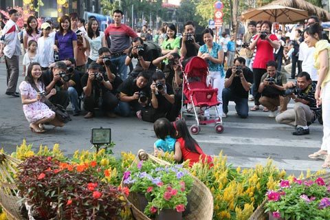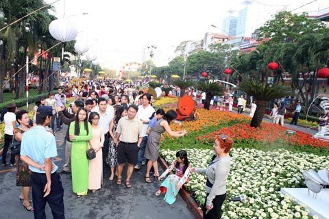 (VIetNamNet) - Buổi sáng sau đêm khai mạc (28 âm lịch), hàng ngàn người nô nức đổ về đường hoa Nguyễn Huệ để tìm cho mình những bức ảnh đẹp nhất.
