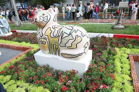 Do là năm Tân Mão theo âm lịch, hình ảnh con mèo là linh vật xuất hiện nhiều trong đường hoa năm nay.