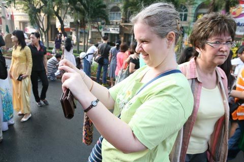 Trong khi các du khách nước ngoài tỏ ra ngạc nhiên thú vị với hoạt động này của thành phố.