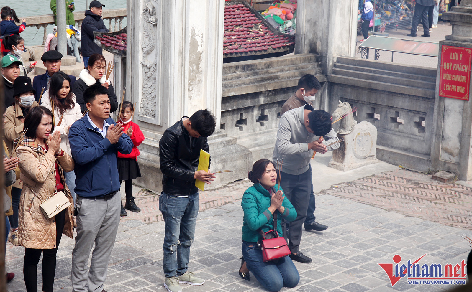 Đến đền Cờn, du khách đến tham quan cũng không quên gieo quẻ xăm xem vận hạn may rủi đối với bản thân mình trong năm.