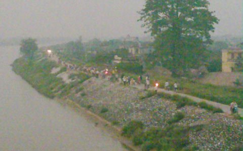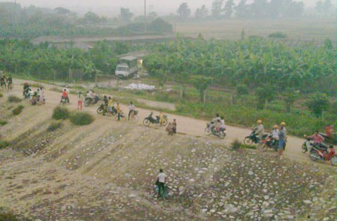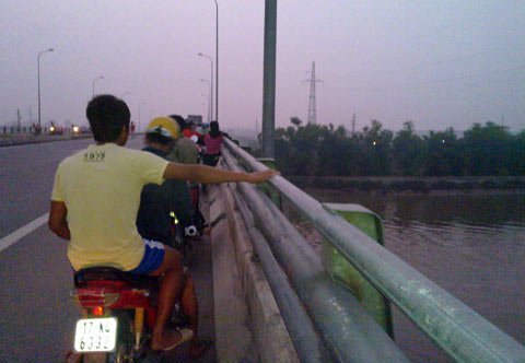| Người dân Thái Bình xôn xao trước sự kiện hai con cá voi bơi lạc vào sông Trà Lý (đoạn sông gần cầu Bo, thành phố Thái Bình). |