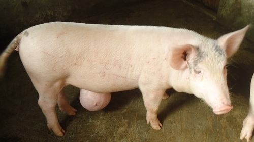 Lúc còn, nhỏ con heo vẫn bình thường và chóng lớn. Nhưng càng lớn vùng da dưới bụng con heo bắt đầu căng phồng sau đó bung ra một quả hình tròn tròn, mềm giống như một quả bóng.