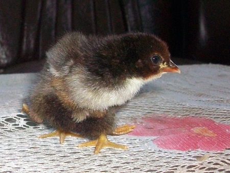 Hai chân còn lại ở hai bên và quặp ra phía sau. Khi chú gà di chuyển, hai chân không chạm đất trông rất ngộ nghĩnh.