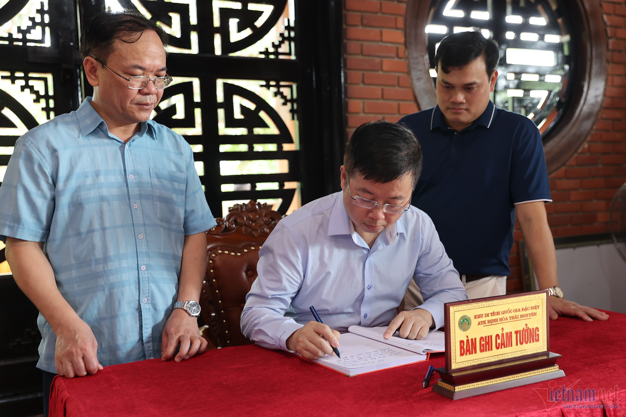 Đoàn cán bộ, nguyên cán bộ Bộ TT&TT chuẩn bị vào dâng hương tại Đền thờ Bác Hồ, nằm trong quần thể Di tích Quốc gia đặc biệt An toàn khu Định hóa, huyện Định Hóa, tỉnh Thái Nguyên.Thứ trưởng Bộ TT&TT Nguyễn Thanh Lâm (giữa) cùng nguyên Thứ trưởng Bộ TT&TT Trần Đức Lai (bên phải) thỉnh chuông trước khi dâng hương.Thứ trưởng Nguyễn Thanh Lâm cùng các lãnh đạo, cán bộ, nguyên lãnh đạo, cán bộ Bộ TT&TT thành kính dâng hương trước bàn thờ Chủ tịch Hồ Chí Minh.Thử trưởng Nguyễn Thanh Lâm (thứ 4 tính từ bên phải) cùng nguyên Thứ trưởng Bộ Bưu chính, Viễn thông Đặng Đình Lâm, nguyên Thứ trưởng Bộ TT&TT Trần Đức Lai, nguyên Thứ trưởng Bộ TT&TT Nguyễn Minh Hồng cùng đoàn thành kính trước bàn thờ Bác Hồ.Đoàn cán bộ, nguyên cán bộ Bộ TT&TT lần lượt dâng hương Thứ trưởng Nguyễn Thanh Lâm viết cảm tưởng.Đoàn chụp ảnh lưu niệm trước Đền thờ Chủ tịch Hồ Chí Minh.Đoàn dâng hương tại khu Di tích lịch sử ngành Bưu Điện tại thôn Bản La, xã Bình Thành, huyện Định Hóa, Thái Nguyên.Đây là một trong những địa điểm thuộc ATK (An toàn khu) trong cuộc kháng chiến chống thực dân Pháp xâm lược (1946 - 1954). Nơi đây đã đặt trụ sở của Ban giao thông liên lạc Trung ương (tổ chức tiền thân của Nha Bưu điện Việt Nam - Tổng cục Bưu điện - Bộ Bưu chính, Viễn thông - Bộ Thông tin và Truyền thông ngày nay), tổ chức mạng lưới thông tin liên lạc phục vụ Trung ương Đảng, Chính phủ... góp phần đưa cuộc kháng chiến chống thực dân Pháp của dân tộc ta đến thắng lợi.Đoàn chụp ảnh lưu niệm tại khu Di tích lịch sử ngành Bưu điện.Thứ trưởng Nguyễn Thanh Lâm trao đổi với các cán bộ địa phương.Các lãnh đạo, cán bộ, nguyên lãnh đạo, cán bộ Bộ TT&TT ôn lại những kỷ niệm.