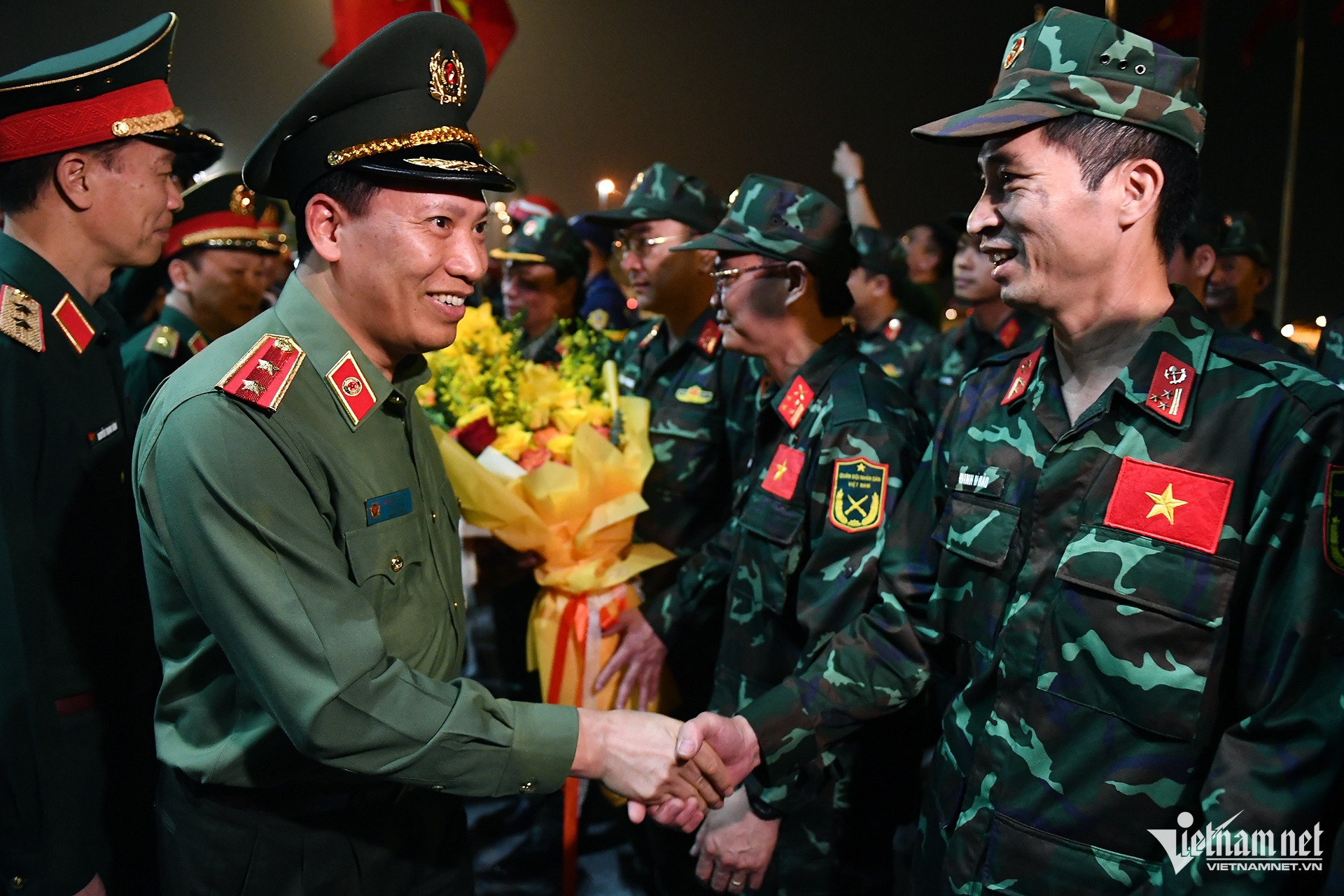 Trung tướng Lê Văn Tuyến - Thứ trưởng Bộ Công an chúc mừng các cán bộ, chiến sĩ hoàn thành nhiệm vụ trở về.