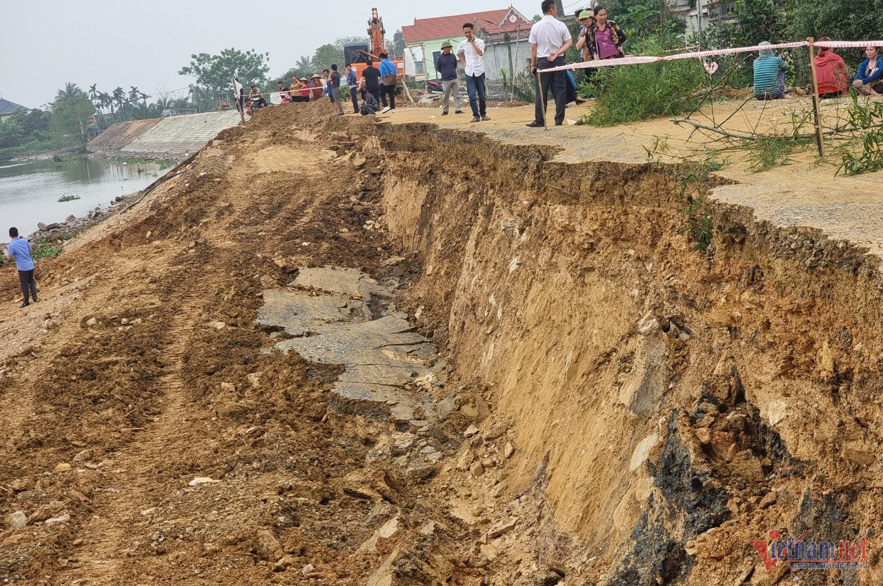 Theo lãnh đạo huyện Nga Sơn, sau khi xảy ra sự việc, chính quyền địa phương cùng với đơn vị thi công đã căng dây cảnh báo, không cho các phương tiện qua đê để chờ phương án xử lý, khắc phục.