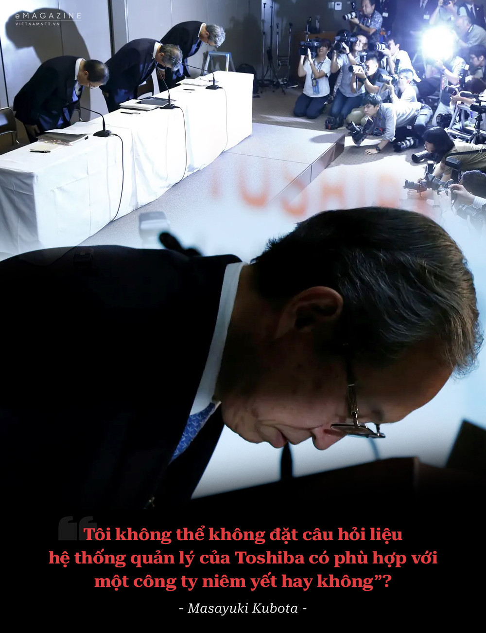 Năm 2017, Masayuki Kubota – chuyên gia của Viện nghiên cứu kinh tế chứng khoán Rakuten – từng nêu vấn đề: “Tôi không thể không đặt câu hỏi liệu hệ thống quản lý của Toshiba có phù hợp với một công ty niêm yết hay không”?