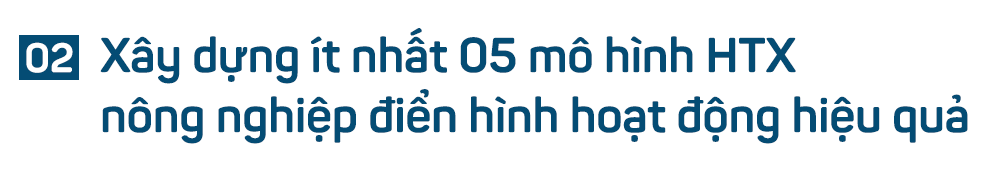 Giá trị sản phẩm trên một đơn vị diện tích sản xuất nông nghiệp tăng 25% so với năm 2020; doanh thu tăng ít nhất 20% và khoảng 20% HTX nông nghiệp tham gia liên kết theo chuỗi giá trị các sản phẩm nông sản, đặc biệt là các sản phẩm chủ lực của tỉnh.