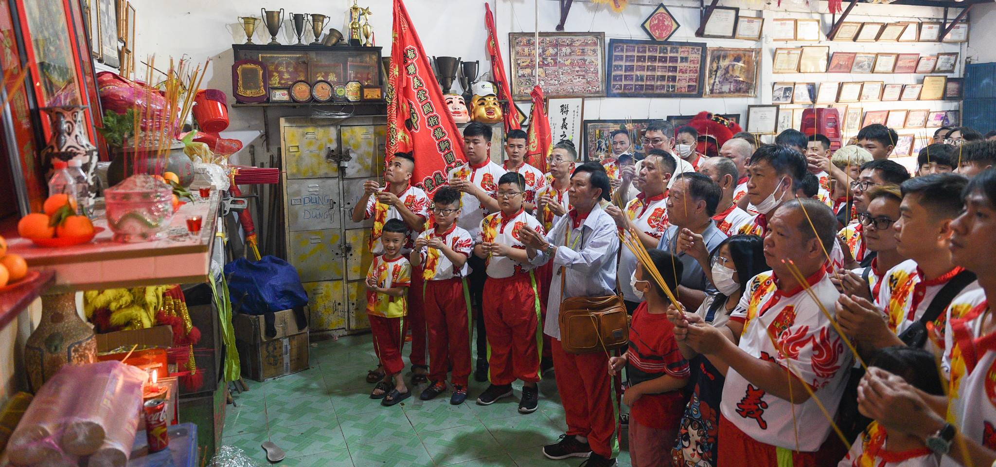 Trước một buổi diễn, các thành viên có mặt tại võ quán thắp hương bái tổ rồi diễu hành đến chùa Bà Thiên Hậu (quận 5). Đây được coi là một nghi lễ quan trọng trước khi xuất hành.
