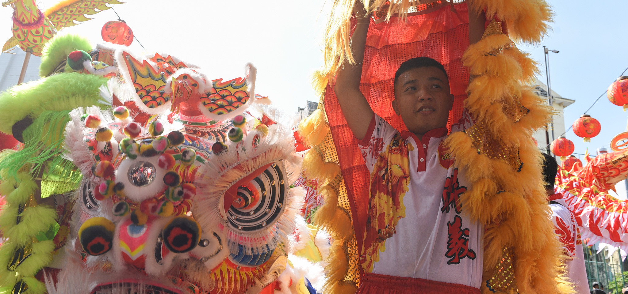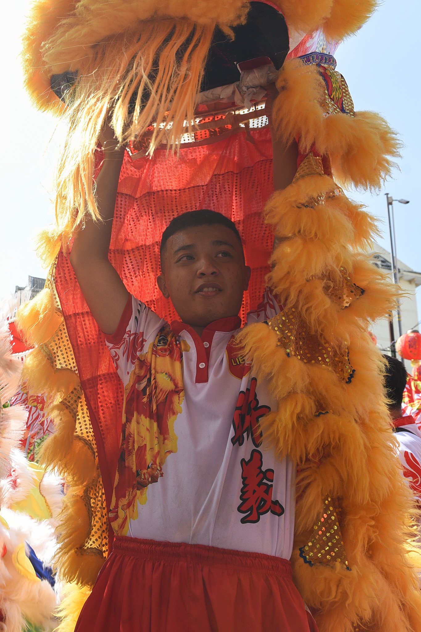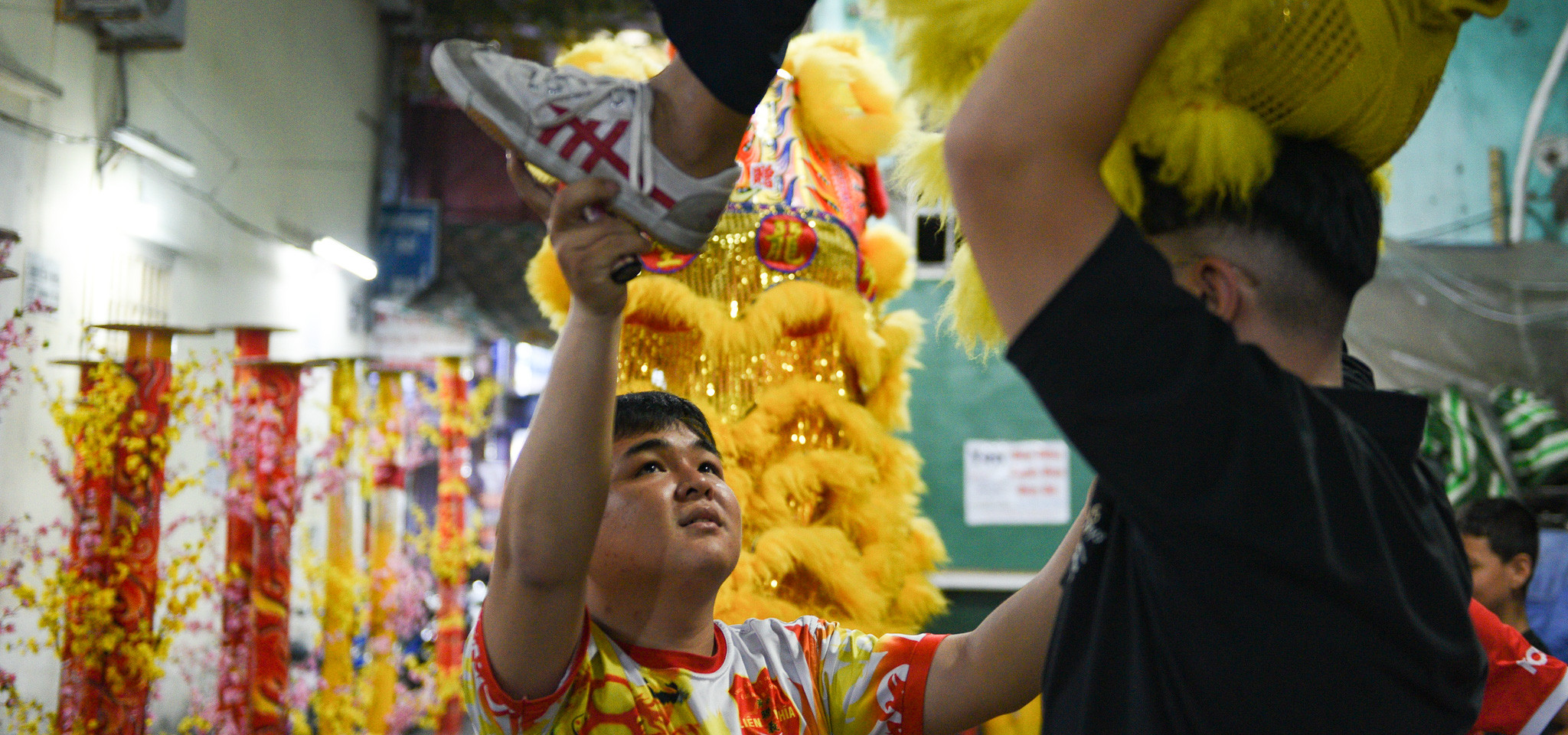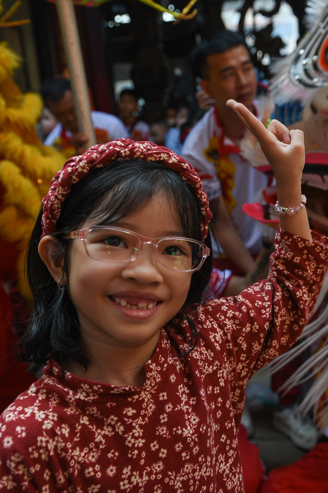 Tại Chùa Bà Thiên Hậu, một số đội lân sư rồng từ những võ quán khác cũng có mặt. Nhiều em nhỏ phấn khích trước các đầu lân sặc sỡ sắc màu.