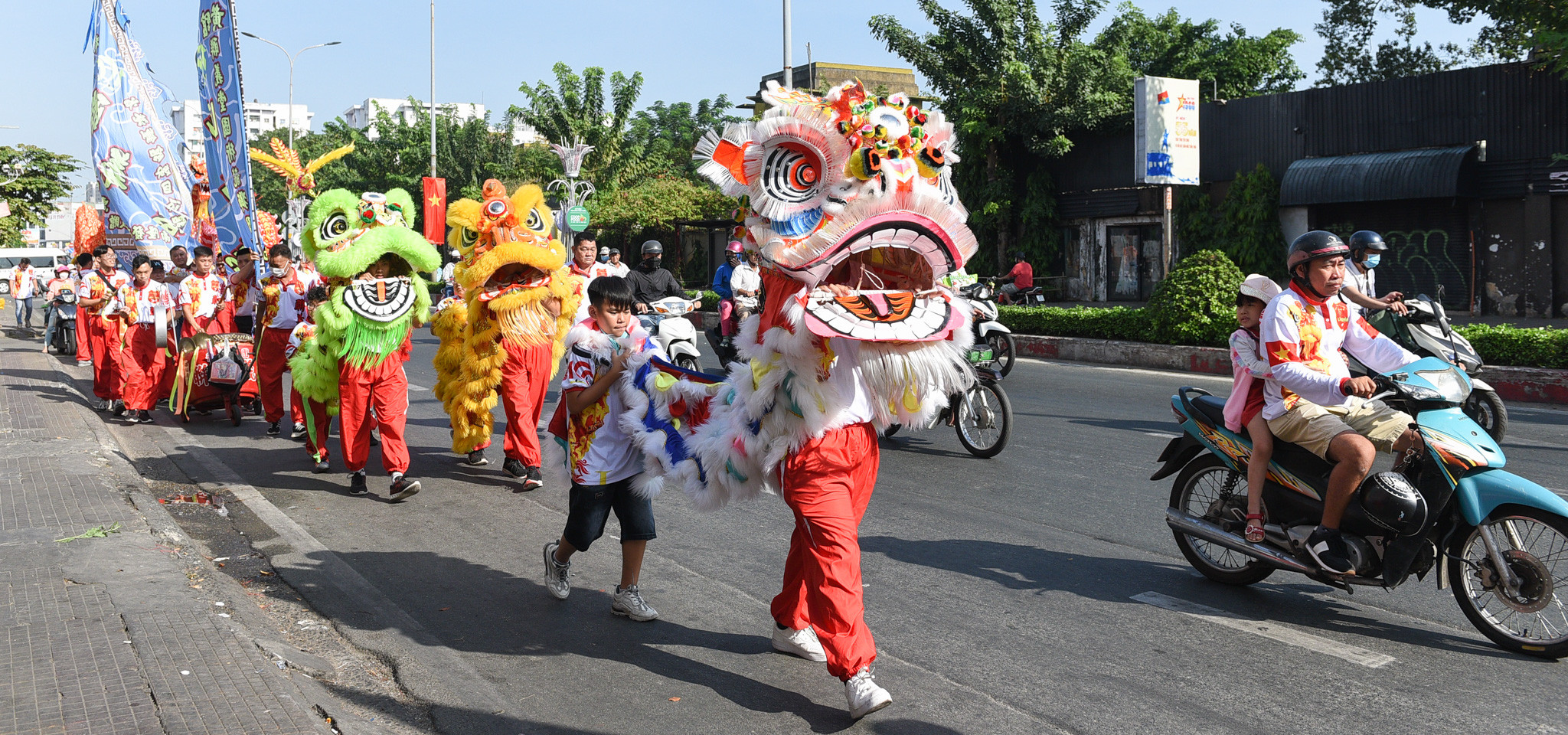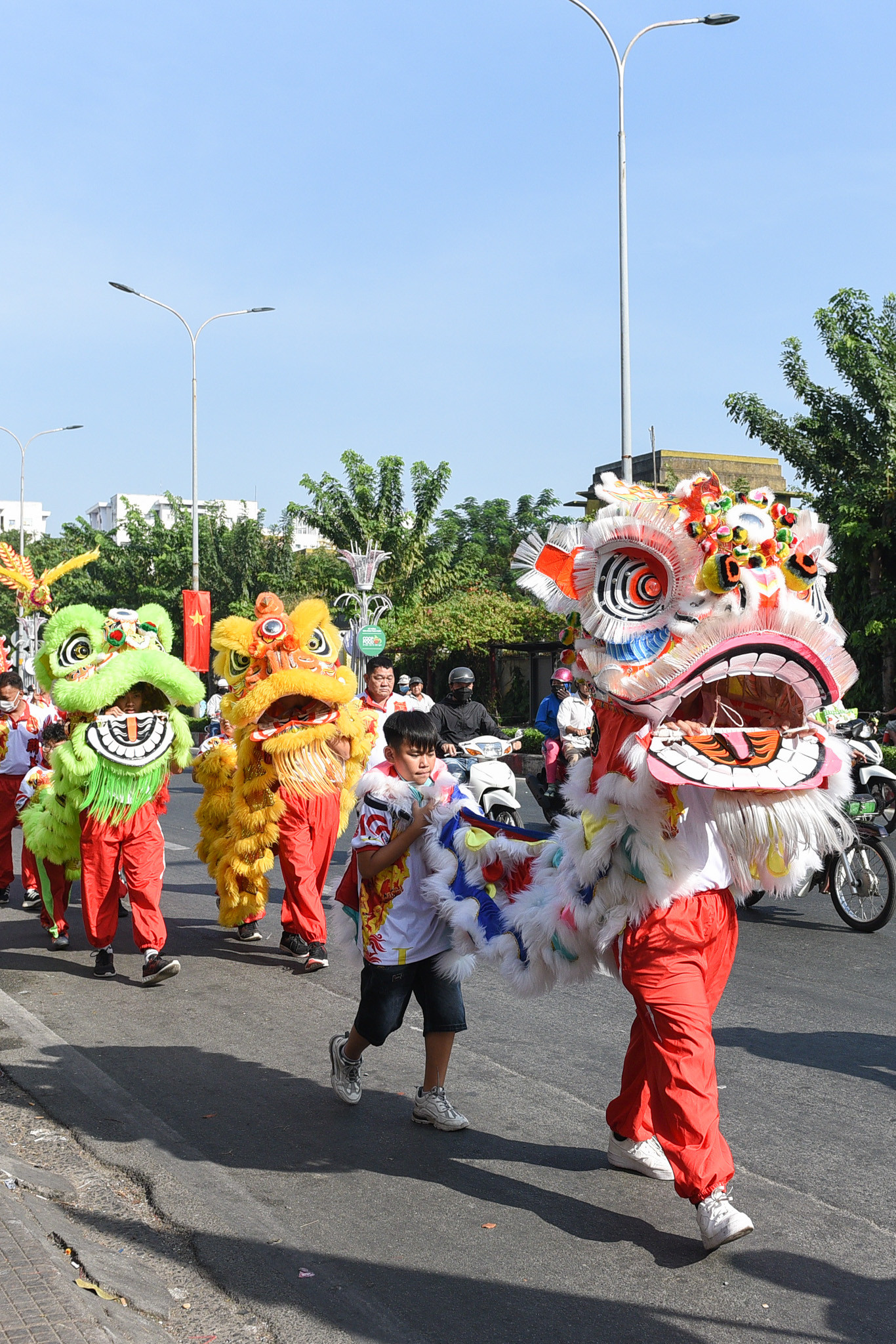 Trong một lần đến địa điểm biểu diễn, đoàn lân sư rồng trải qua chặng đường đi bộ từ võ quán đến chùa Bà Thiên Hậu, dài khoảng 3km.
