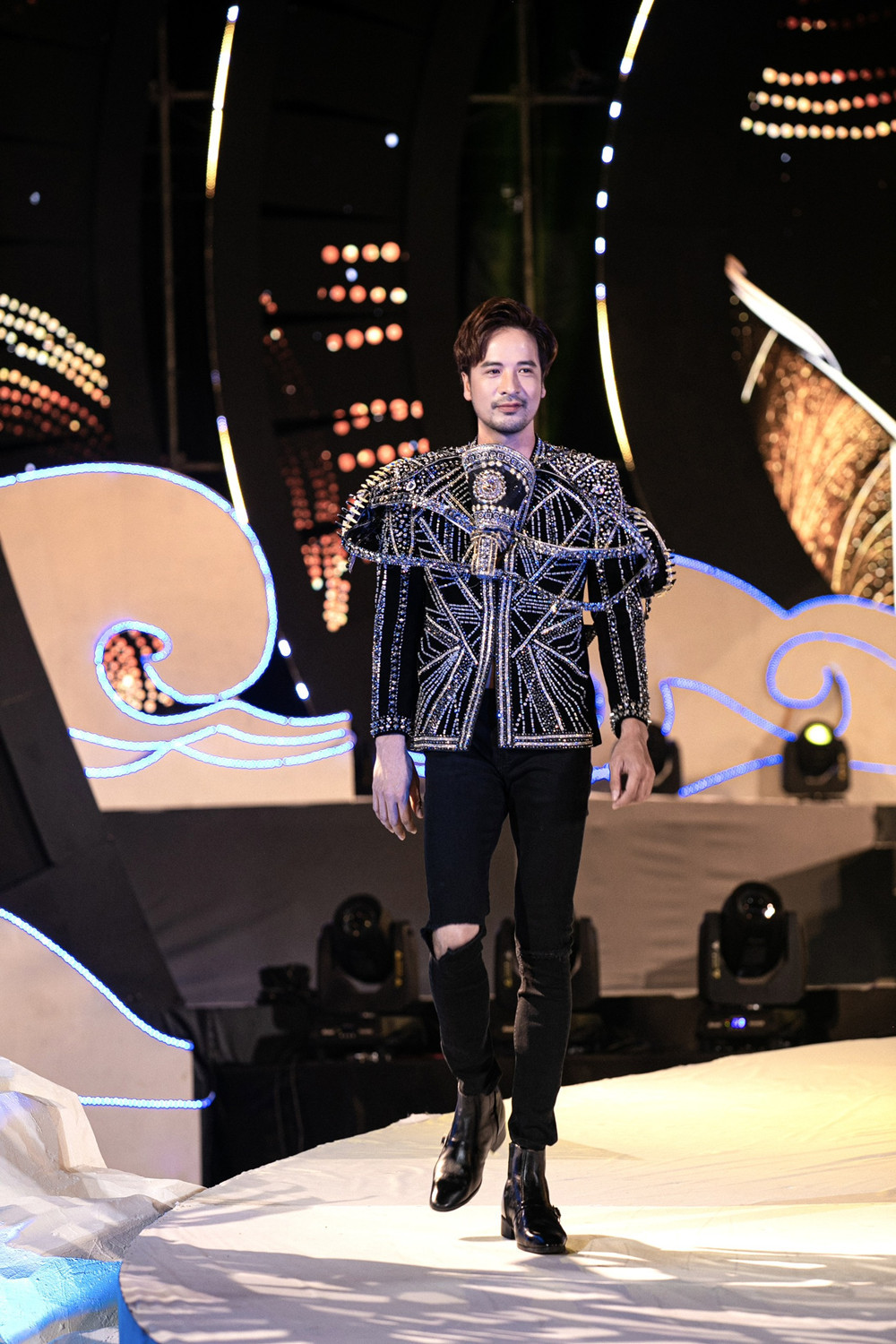 Lần hiếm hoi, Đoàn Minh Tài và Phan Thị Mơ sải bước sóng đôi với vai trò vedette trong show thời trang "Đêm hội thời trang sắc biển" của NTK Nam Phong.