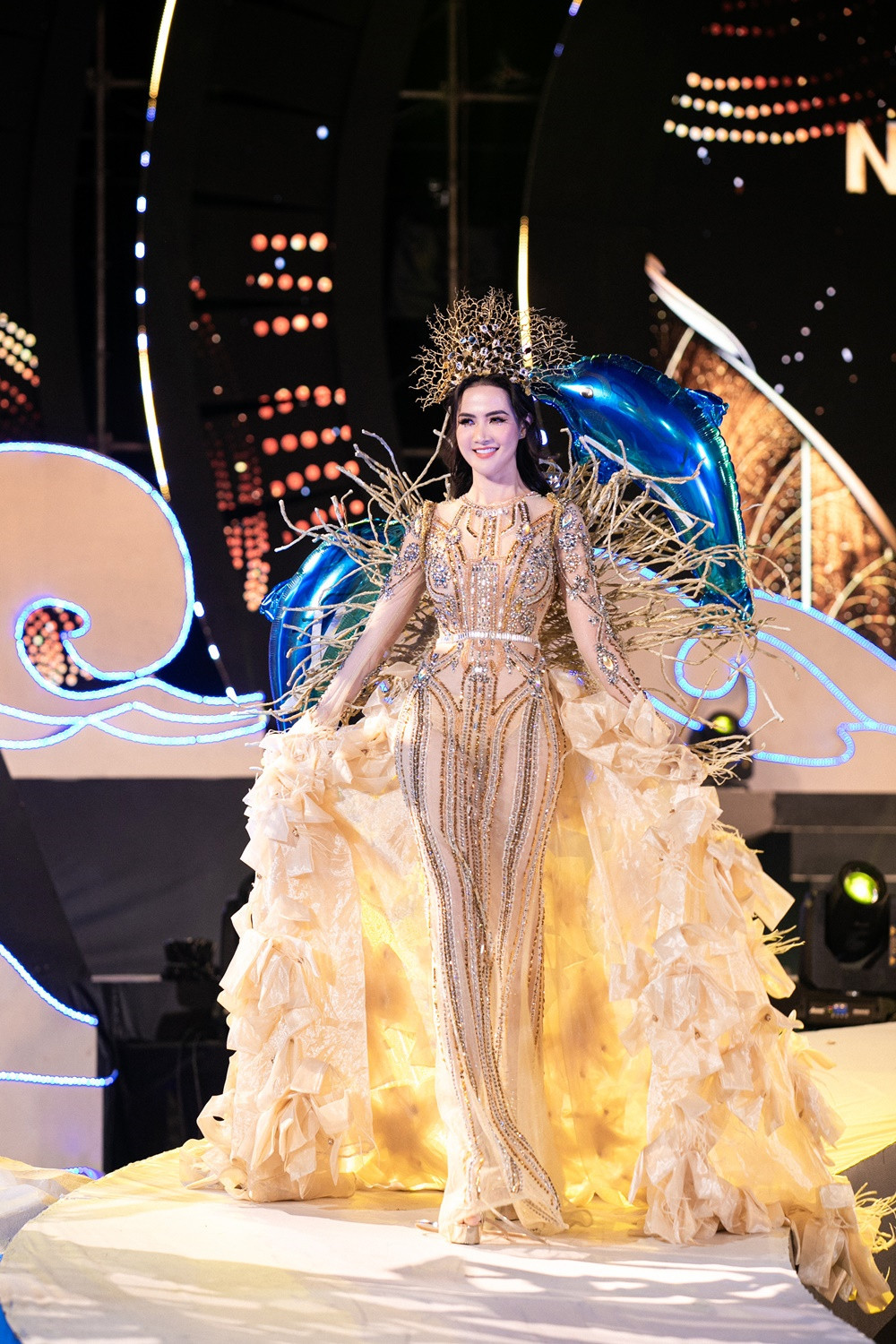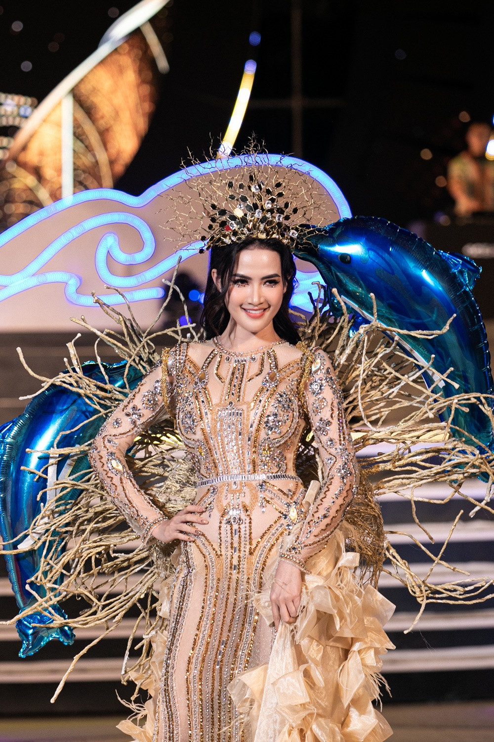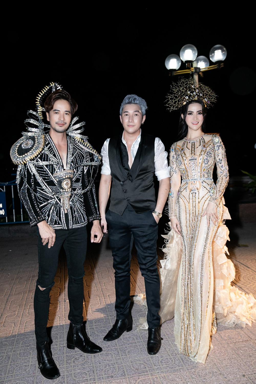 Show diễn đánh dấu sự trở lại sàn catwalk của diễn viên Đoàn Minh Tài sau 4 năm. Anh thể hiện phong cách sải bước điềm đạm, lịch lãm đúng với con người mình hiện tại. "Tôi vui khó tả và đầy say mê khi được sải bước trong không gian âm nhạc và màu sắc lung linh của đại dương", anh nói. Đoàn Minh Tài và NTK Nam Phong là anh em đồng nghiệp rất thân thiết. Diễn viên chia sẻ: "Tôi tự hào về Nam Phong. Em đã cho ra mắt bộ sưu tập đẹp - độc - lạ. Nhìn em ấy tâm huyết và yêu nghề, tôi thấy thương vô cùng". Phan Thị Mơ - vedette thứ hai của show - phải gác lại nhiều show để bay xuyên đêm đến Nha Trang biểu diễn. Mặt cô bị sưng do thiếu ngủ nhưng khi lên sàn, người đẹp thể hiện thần thái tự tin ấn tượng. Thiết kế đính nhiều đá phát sáng, kết cườm thủ công rất tỉ mỉ. Đuôi váy có độ phồng, bồng bềnh với nếp gấp mô phỏng những con sóng ngoài đại dương. Phan Thị Mơ cũng đội chiếc vương miện lấy cảm hứng từ san hô.Màn sải bước sóng đôi của Đoàn Minh Tài và Phan Thị Mơ là điểm nhấn của show diễn. Cả hai mang phong cách đối lập. Nếu Đoàn Minh Tài thể hiện chất cổ điển lịch lãm thì Phan Thị Mơ phô diễn vẻ kiều diễm, e ấp. NTK Nam Phong nhận xét cả hai rất đẹp đôi, thể hiện đúng tinh thần hào hùng, uy nghi của biển cả mà bộ sưu tập của anh cùng Đêm hội thời trang sắc biển hướng tới.Đêm hội thời trang sắc biển của NTK Nam Phong nằm trong khuôn khổ chương trình "Nha Trang – Chào hè 2022". Thông qua loạt sự kiện, chương trình giới thiệu, quảng bá hình ảnh Nha Trang - Khánh Hòa sâu rộng đến bạn bè, du khách trong và ngoài nước. Đoàn Minh Tài và Phan Thị Mơ thấy vinh dự khi được đóng góp sức mình vào công cuộc quảng bá du lịch Nha Trang sau đại dịch.