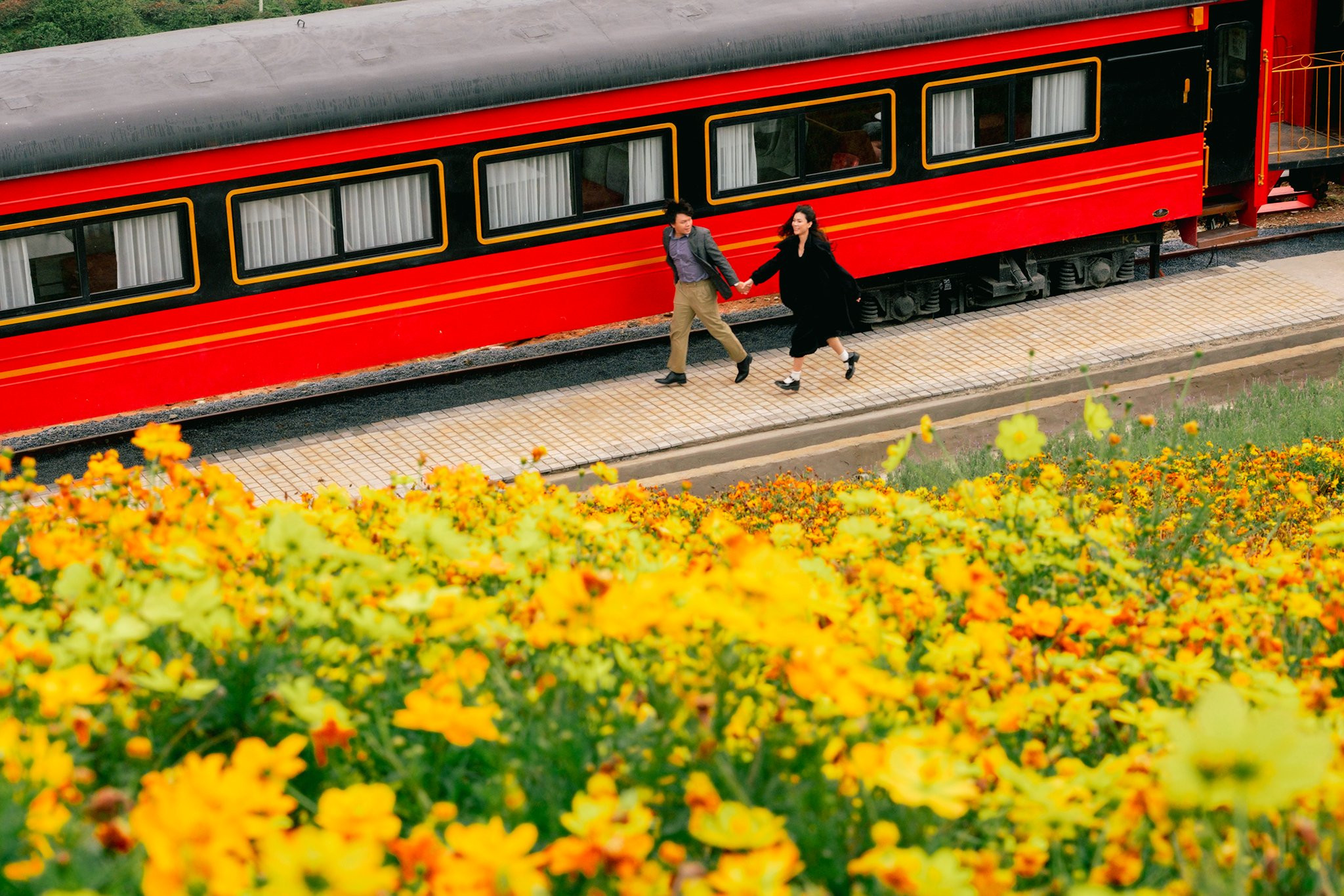 Gần đây, tại khu vực đồi chè Cầu Đất - điểm du lịch nổi tiếng với du khách khi tới Đà Lạt (Lâm Đồng) bất ngờ xuất hiện một đoàn tàu đỏ rực, nằm giữa lưng chừng đồi. Một phía của đoàn tàu hướng về đồi chè xanh bát ngát, trập trùng, một phía kề cận đồi hoa ngũ sắc, lavender rực rỡ (Ảnh: Trình Nguyễn)Địa điểm này nhanh chóng được giới trẻ yêu thích, tìm đến chụp ảnh và chia sẻ trên các nhóm du lịch (Ảnh: Cristi Thương)Đây cũng trở thành bối cảnh được nhiều cặp đôi tìm tới chụp ảnh kỉ niệm, ảnh cưới... theo phong cách retro, hoài niệm (Ảnh: Viên Diệu Phát)Cặp đôi Nguyên - Hân di chuyển từ TPHCM lên Đà Lạt du lịch và chụp ảnh kỉ niệm. Hình ảnh đoàn tàu đỏ nằm giữa đồi hoa khiến họ mê mẩn. "Đây là đoàn tàu thật được cải tạo, trùng tu nên nhìn vô cùng tự nhiên. Khi chụp hình cho khách tại đây, mình cảm giác như đang ở một nhà ga đầy mộng mơ", nhiếp ảnh gia Viên Diệu Phát (TPHCM) chia sẻ (Ảnh: Viên Diệu Phát)Cristi Thương (26 tuổi) - một bạn trẻ Đà Lạt đã cùng hai người bạn thân tìm tới địa điểm này chụp ảnh. "Khu vực này dễ tìm, hiện đang mở hoàn toàn miễn phí nên du khách thoải mái tới check-in. Không gian ở đây rất tuyệt để chụp các bộ ảnh nghệ thuật", Thương chia sẻ (Ảnh: Cristi Thương)Đôi bạn Hoàng (1996) và Phương (1999) vô cùng yêu thích bộ ảnh chụp tại đây. "Đoàn tàu khi vào ảnh nhìn như đang dịch chuyển. Không gian ở đây không chỉ lãng mạn mà còn tạo ra chút gì đó hoài niệm. Khi buồn, du khách có thể tưởng tượng ra một ga tàu - nơi chia xa. Khi vui, đó là nơi đoàn tụ", Phương chia sẻ (Ảnh: Cristi Thương)Đoàn tàu màu tỏ bắt mắt nằm giữa đồi chè xanh, đồng hoa rực rỡ, phía trên là nền trời trong xanh. "Sự phối màu này tạo nên hiệu ứng thu hút thị giác. Mình nghĩ thời gian tới, đây sẽ là điểm đến đông đúc, được ưa chuộng", nhiếp ảnh gia trẻ Trình Nguyễn chia sẻ (Ảnh: Trình Nguyễn)Du khách tới đây có thể mua cà phê, đồ uống để thưởng thức và thảnh thơi ngắm cảnh từ trong toa tàu (Ảnh: Cristi Thương)