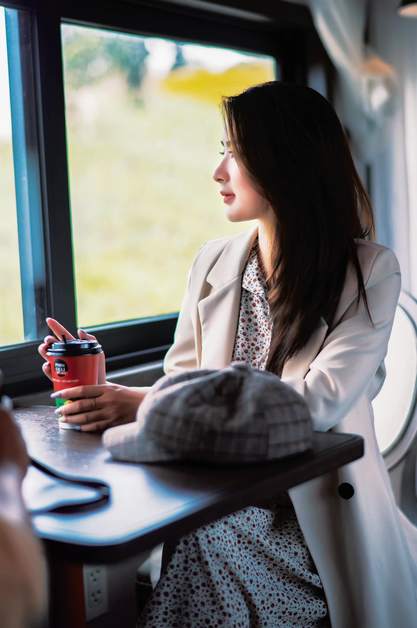 Không gian bên trong các toa tàu cũng là góc check-in đẹp, mới mẻ (Ảnh: Cristi Thương)Được biết, đoàn tàu này được tu sửa và trang trí để tạo thành một quán cà phê độc đáo (Ảnh: Viên Diệu Phát)Điểm check-in này nằm ở khu vực đồi chè Cầu Đất. Do đó, du khách có thể kết hợp lịch trình săn mây vào sáng sớm, sau đó tới cánh đồng điện gió và trở lại thưởng thức cà phê, check-in đoàn tàu đỏ (Ảnh: Viên Diệu Phát)(Ảnh: Cristi Thương)
