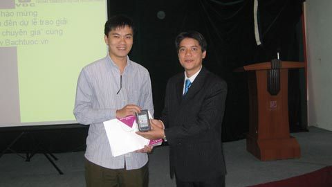 Đại diện công ty VDC trao iPhone cho người thắng cuộc |