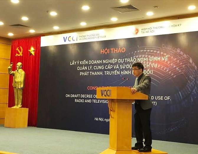 Mới đây, Phòng Thương mại và Công nghiệp Việt Nam (VCCI) đã phối hợp cùng Hiệp hội Thương mại Hoa Kỳ tại Hà Nội tổ chức hội thảo lấy ý kiến về Dự thảo Nghị định sửa đổi, bổ sung một số điều của Nghị định 06/2016/NĐ-CP về quản lý, cung cấp và sử dụng dịch vụ phát thanh, truyền hình (Dự thảo Nghị định) do Bộ TT&TT đang chủ trì soạn thảo.
