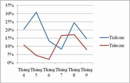 Không chỉ doanh nghiệp mất lòng tin vào nền kinh tế, mà nền kinh tế và công chúng cũng đang mất lòng tin vào doanh nghiệp. Sử dụng phương pháp phân tích lượng hóa nội dung truyền thông (Media Content Analysis), VietNam Report đã tiến hành mã hóa và phân tích các bài báo viết về 46 doanh nghiệp vốn hóa lớn nhất trên thị trường chứng khoán. Kết quả phân tích cho thấy lòng tin của báo chí và công chúng vào khu vực doanh nghiệp đang ngày càng giảm sút. Lần đầu tiên trong tháng 7, số tin bài tiêu cực đã vượt qua số tin bài tích cực. Cùng với sự tăng vọt của lượng tin bài tiêu cực về các DN trên TTCK trong các tháng 7, 8, dường như các nhà đầu tư còn đủ kiên nhẫn để bám trụ thị trường cũng phải đuối sức và đánh mất niềm tin. Một điều rất đáng chú ý là đường diễn biến của chỉ số VN30 Index từ tháng 4 đến tháng 8 năm 2012 tương ứng với sự tăng giảm số bài viết tích cực về 46 DN có tỷ lệ vốn hóa lớn nhất trên thị trường với sự tăng điểm trong các tháng 5, 8 và sụt giảm trong các tháng 6, 7. Tuy nhiên, từ tháng 9, đồ thị về chỉ số này đã cho thấy sự sụt giảm rất sâu xuống dưới mức 480 điểm - là mức thấp của tháng 7. Chỉ số tụt dốc nhanh hơn sự sụt giảm của các thông tin tích cực về DN.