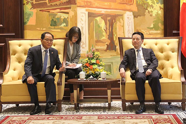 Bộ trưởng Bộ TT&TT Nguyễn Mạnh Hùng tiếp ông Park Noh-wan, Đại sứ Hàn Quốc tại Việt Nam. |