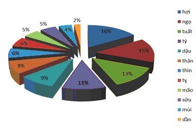 Hình 1: Cơ cấu tuổi theo 12 con giáp của CEO 100 DN lớn nhất Việt Nam