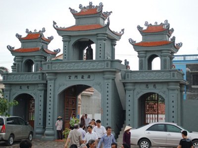 | Cổng vào ngôi chùa làng Vân Độ được anh Bảy xây dựng năm 2008. |