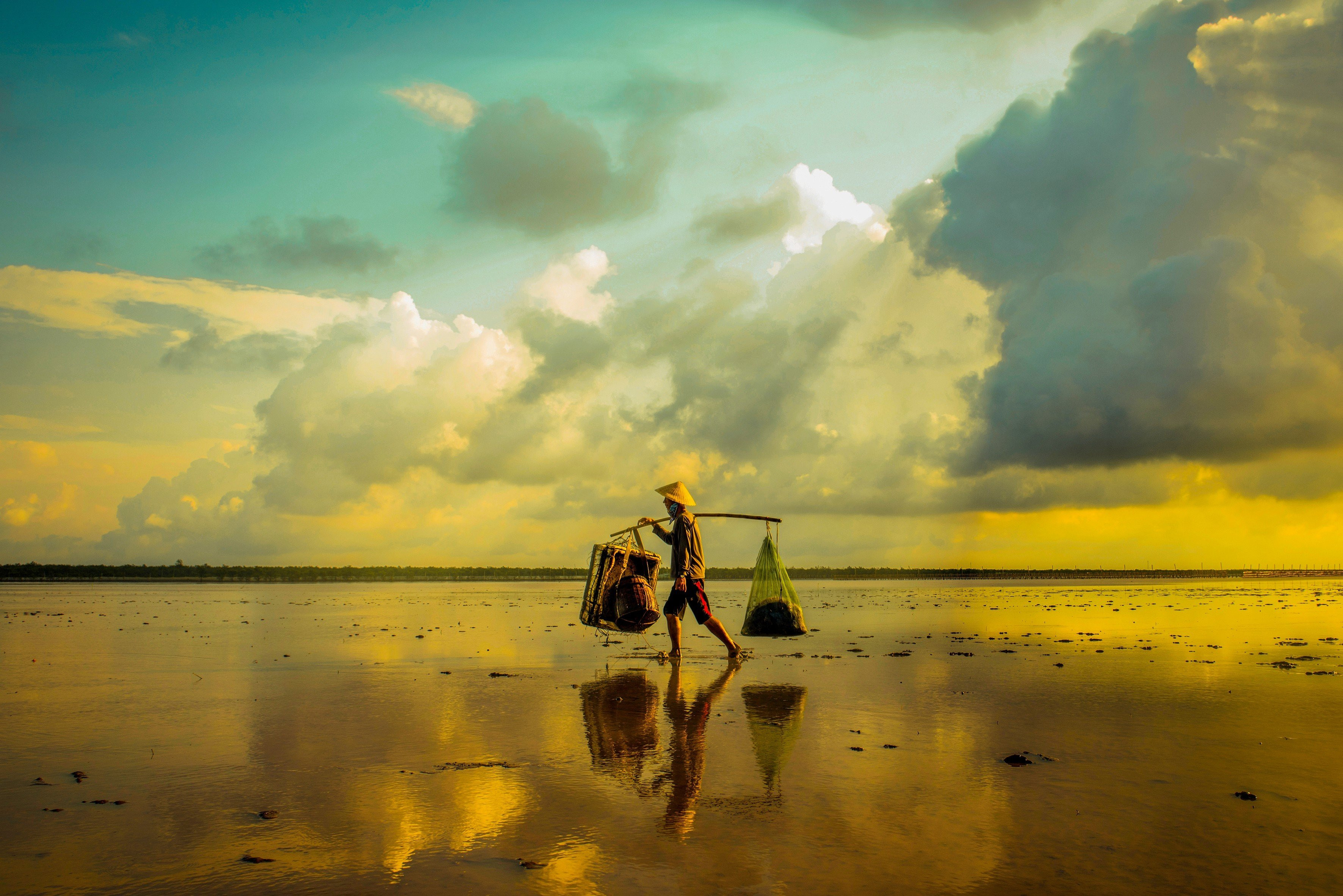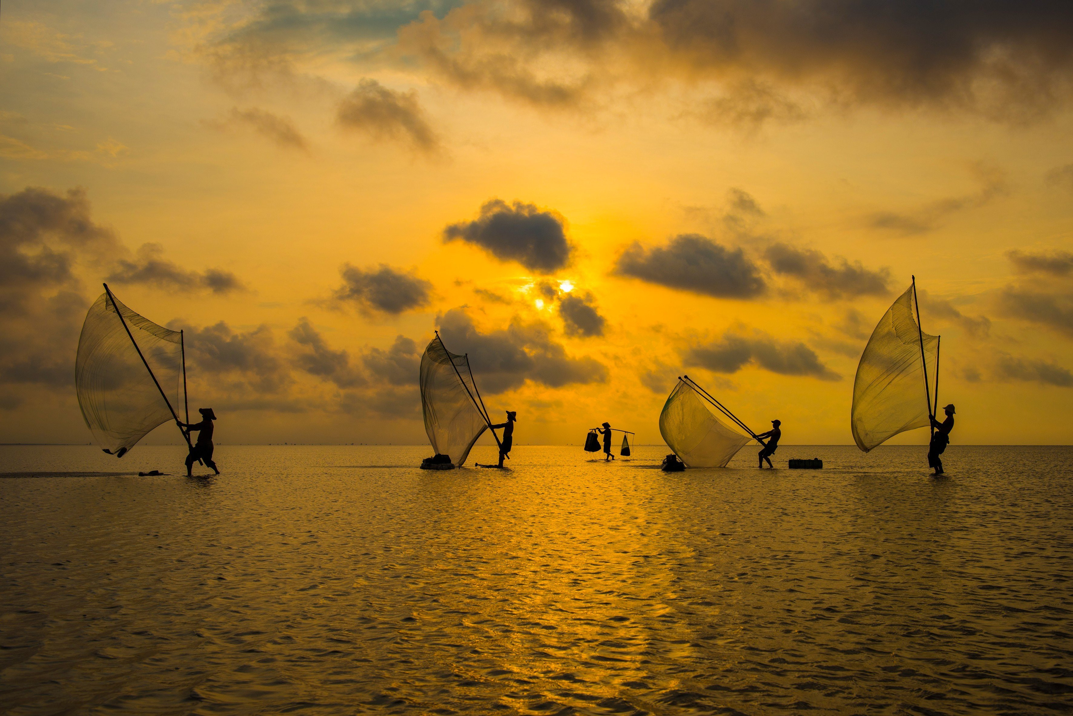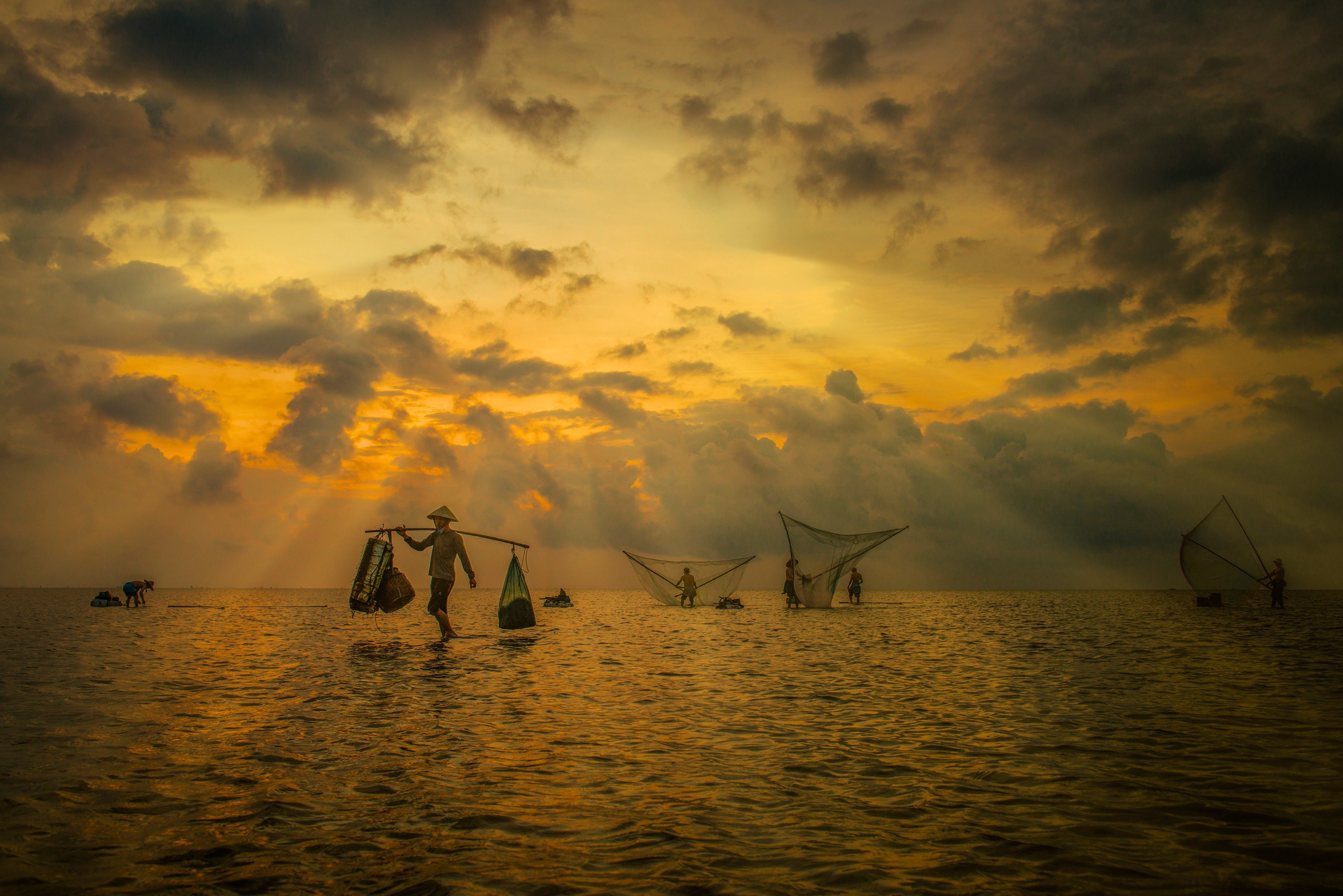 Những ngư dân đang kéo te, đánh bắt cá trong ánh bình minh qua ống kính của nhiếp ảnh gia Khang Chu Long đầy tính nghệ thuật.