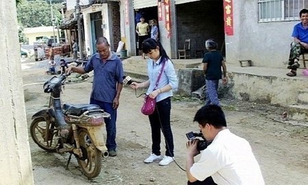 | Đài truyền hình địa phương tới phỏng vấn người có sáng kiến lạ. |