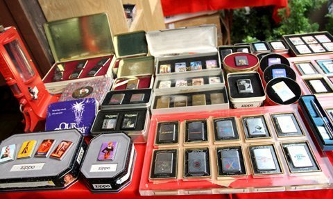 Không chỉ bán đồ cổ Việt Nam, tại một góc khuất của hội chợ cũng bày bán cả những chiếc bật lửa Zippo cũ.