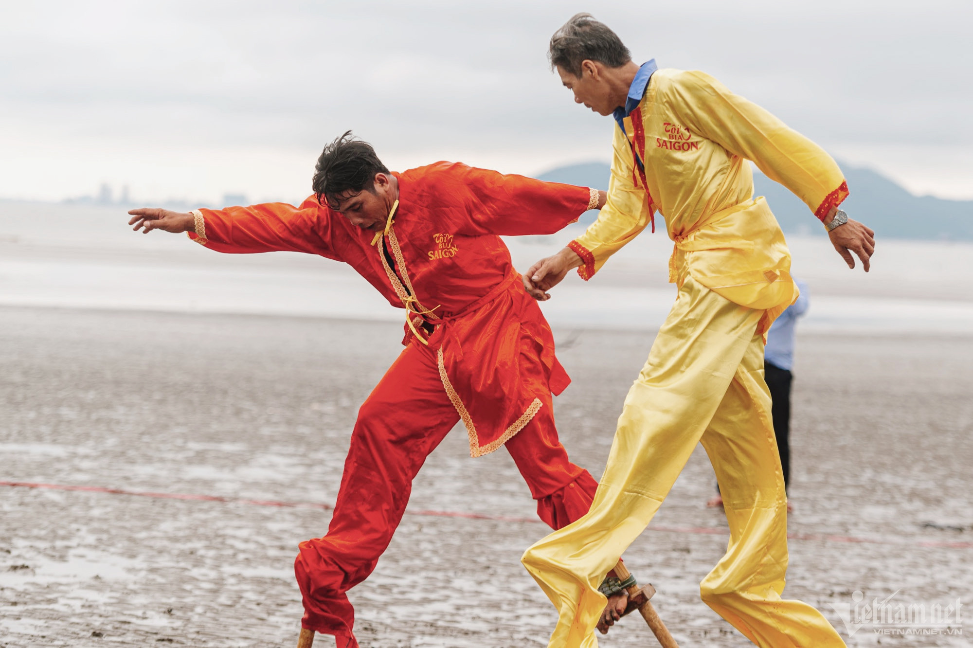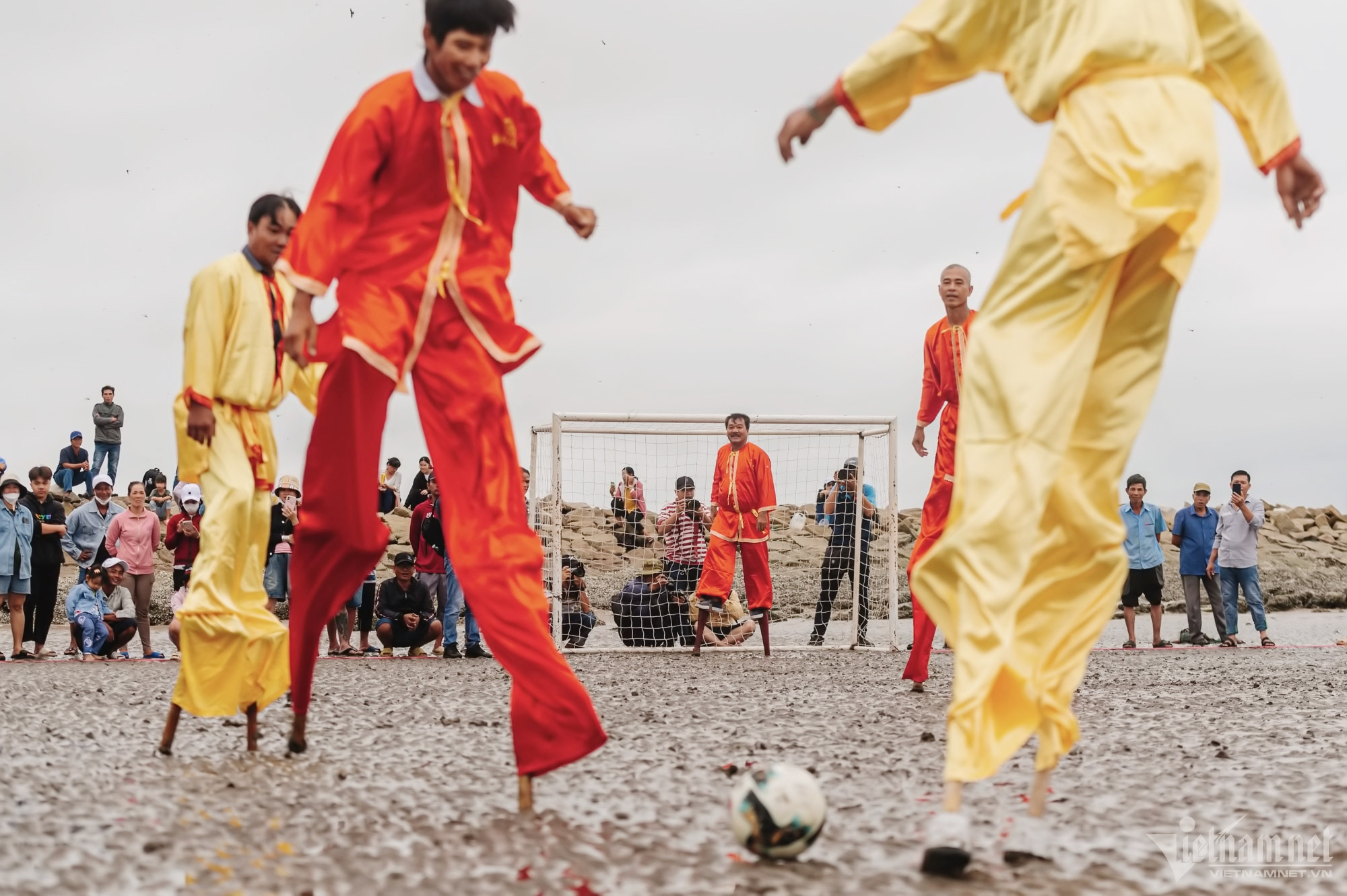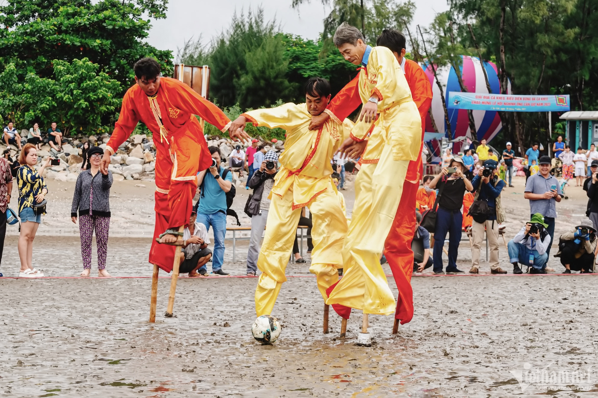 Sáng 30/9, du khách tham dự Lễ hội Nghinh Ông - Cần Giờ 2023 được chứng kiến trận bóng đặc biệt của những ngư dân trên đôi cà kheo tại bãi biển Cần Thạnh.