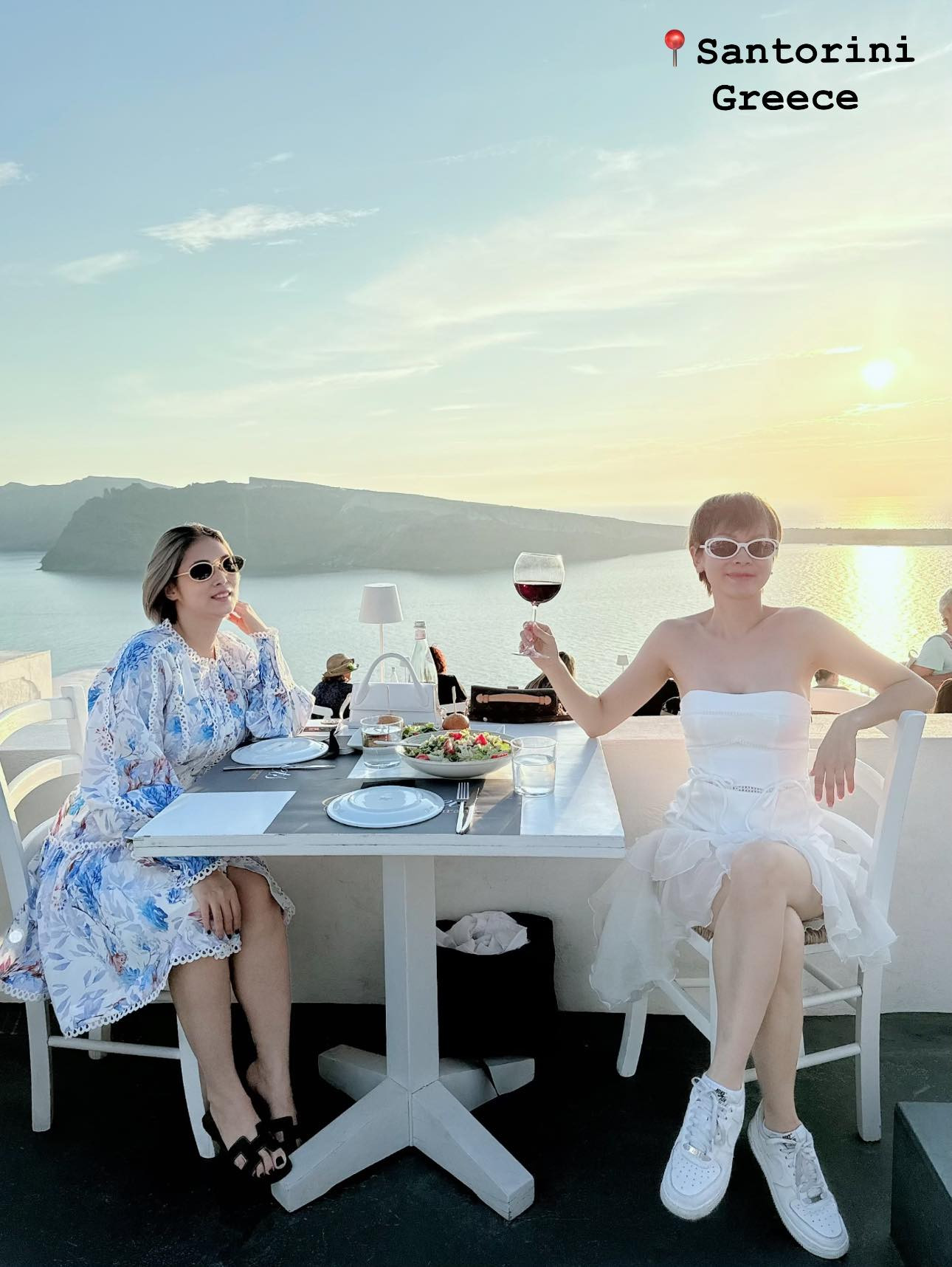 Ở Hy Lạp, họ chọn đến Santorini - hòn đảo có hình vòng cung tuyệt đẹp nằm ở miền nam biển Aegea, cách đất liền Hy Lạp khoảng 200km. Đôi bạn mê đắm với khung cảnh như xứ sở thần tiên: Nước biển màu xanh dương, trong vắt, những ngôi nhà trắng, xanh lấp ló, bình yên.