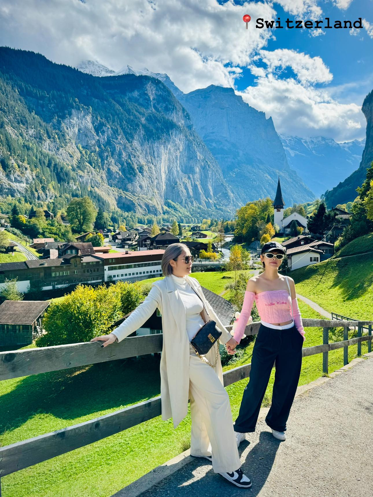Đôi bạn thân thích thú check-in giữa khung cảnh đẹp như tranh ở Thụy Sĩ